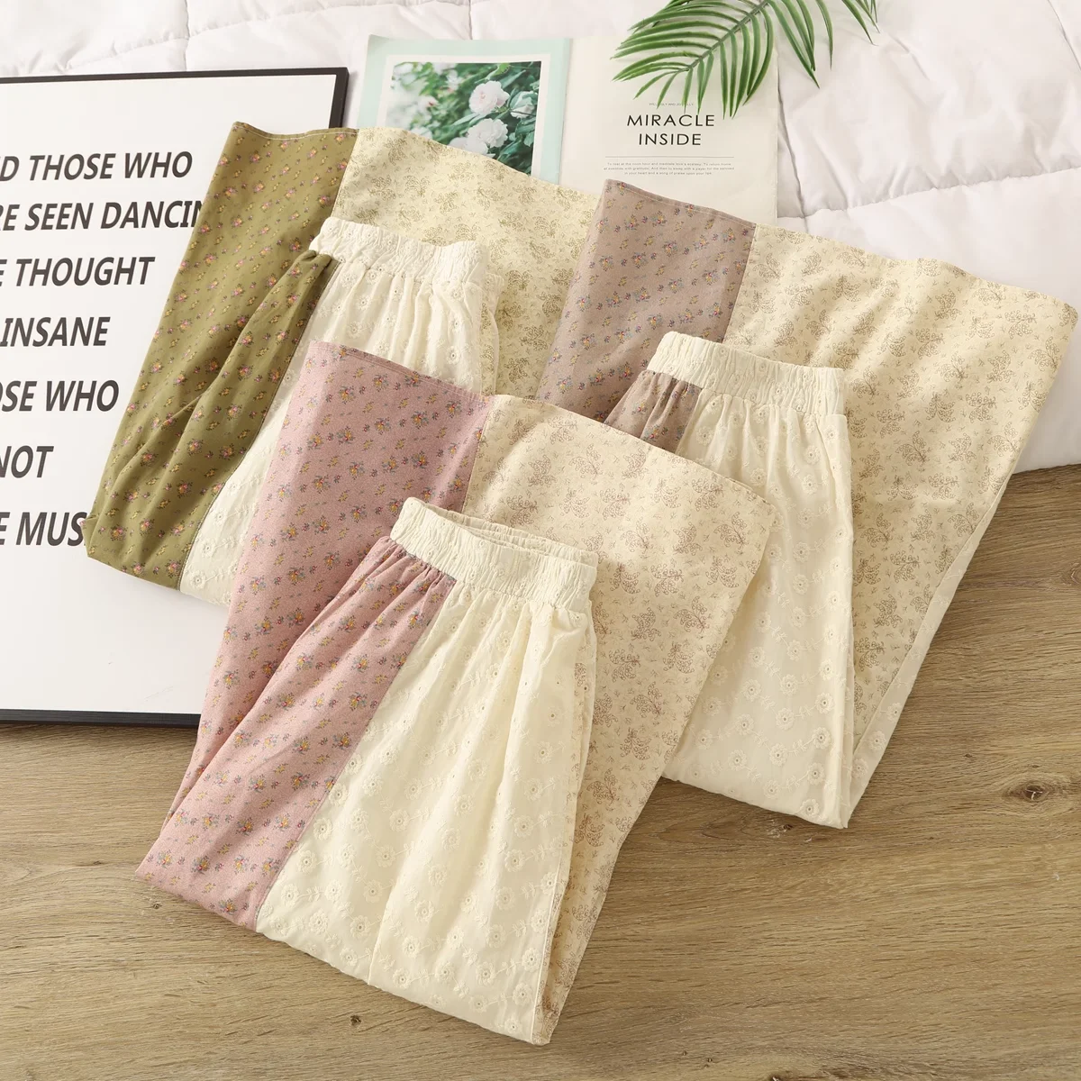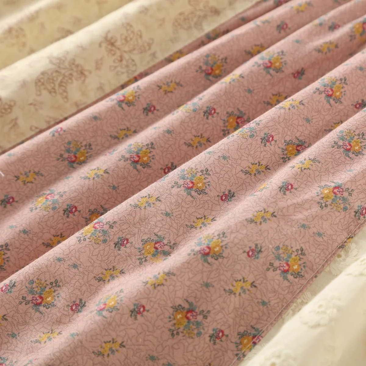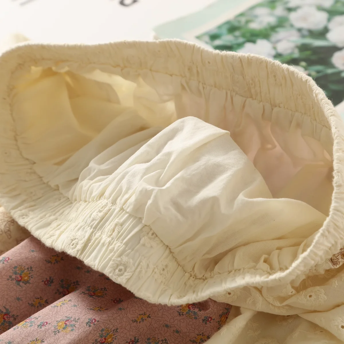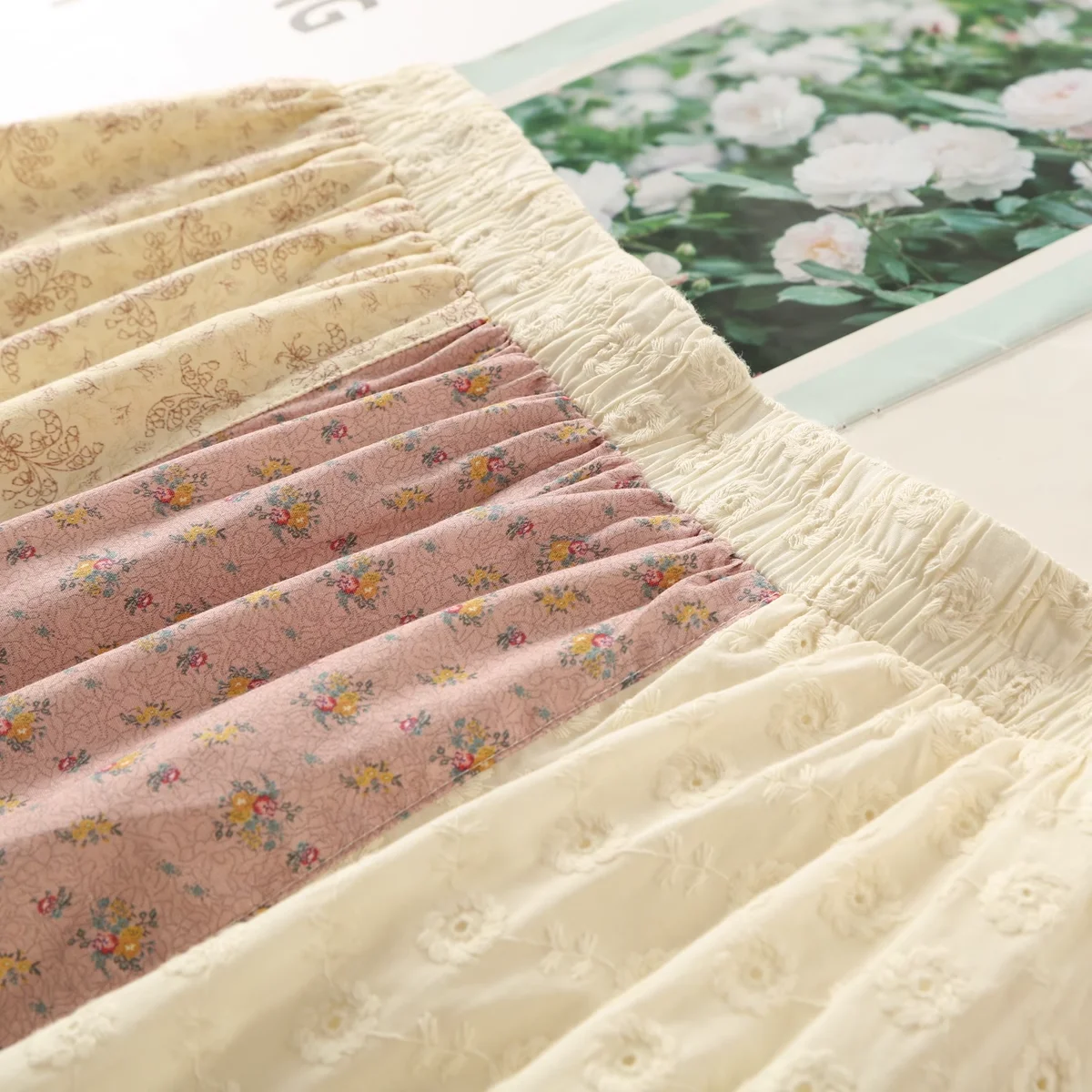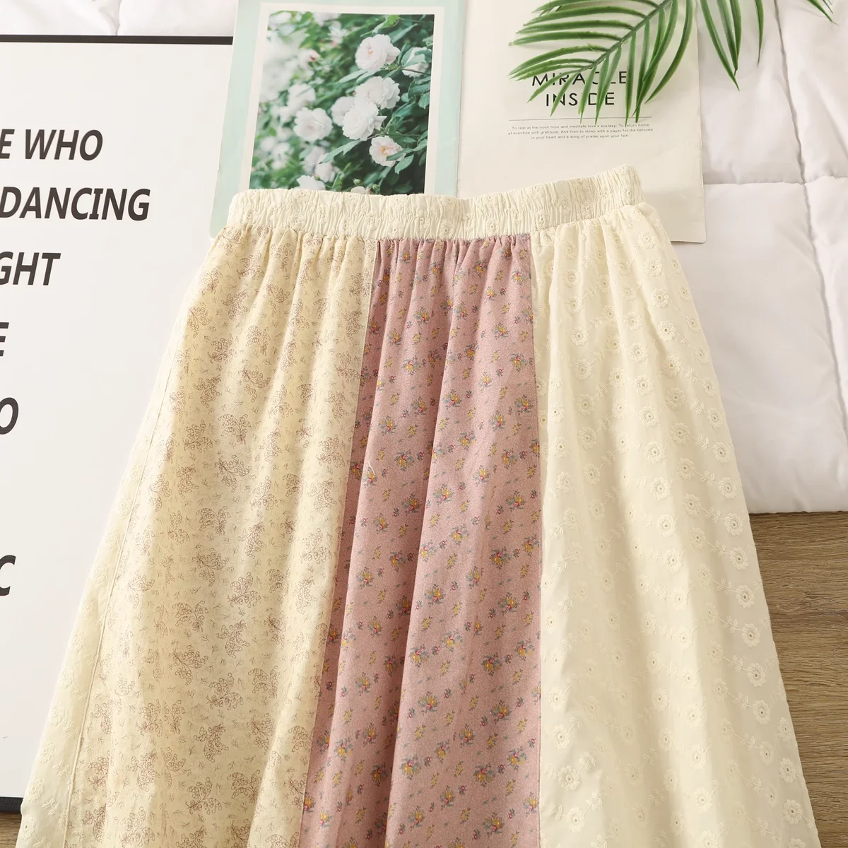2025 Mori kei fashion elastic waist print patchwork long skirts for women rustic style 100% cotton a-line midi skirts