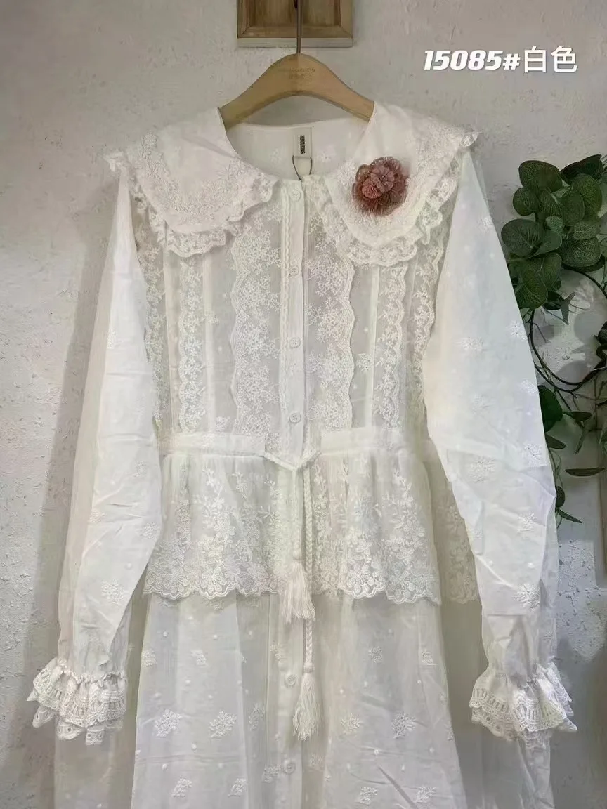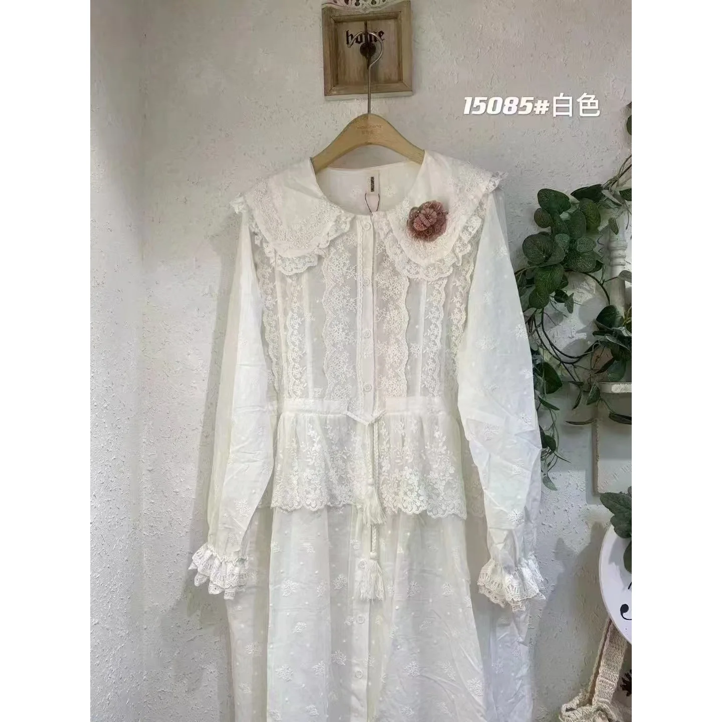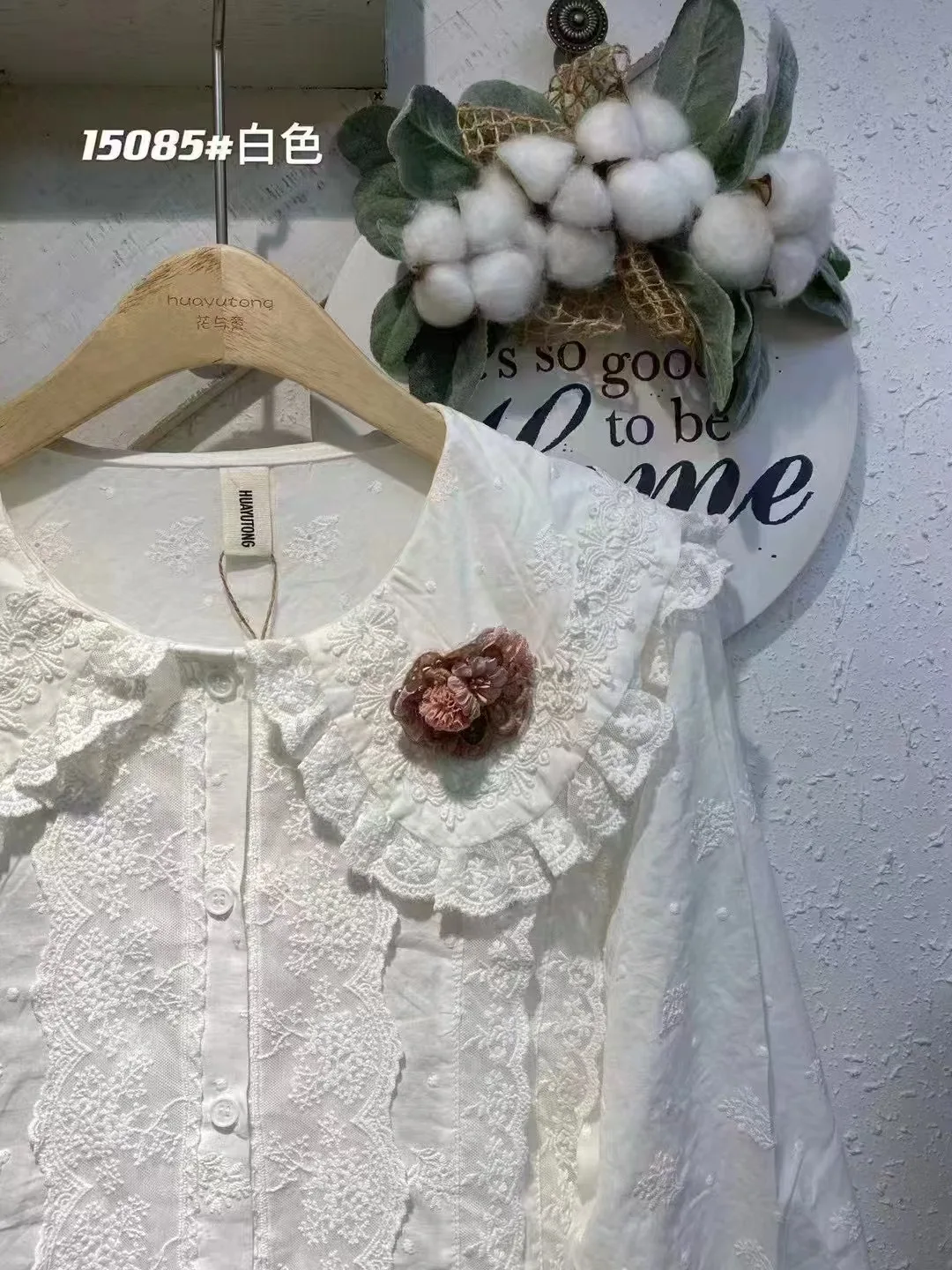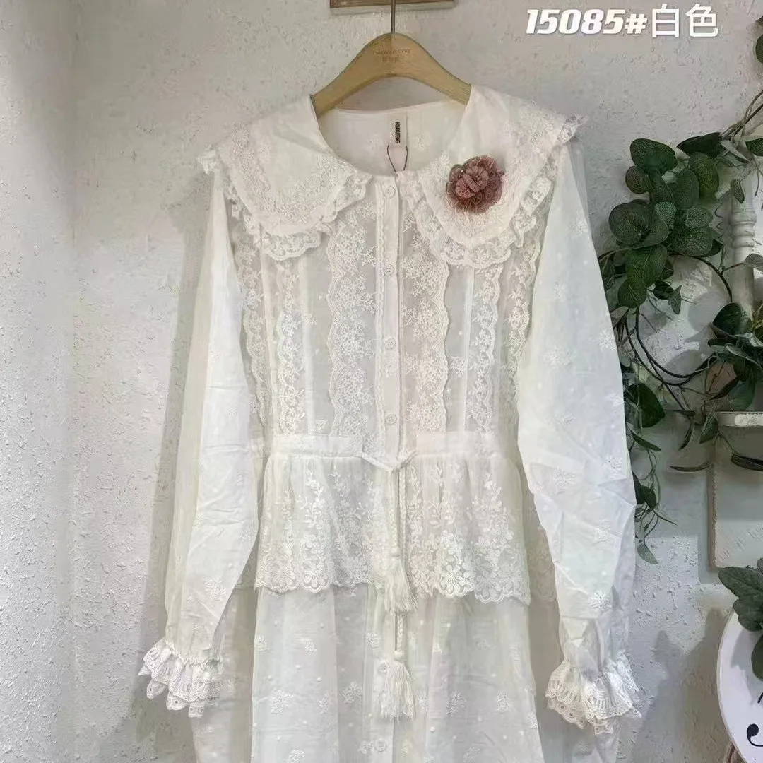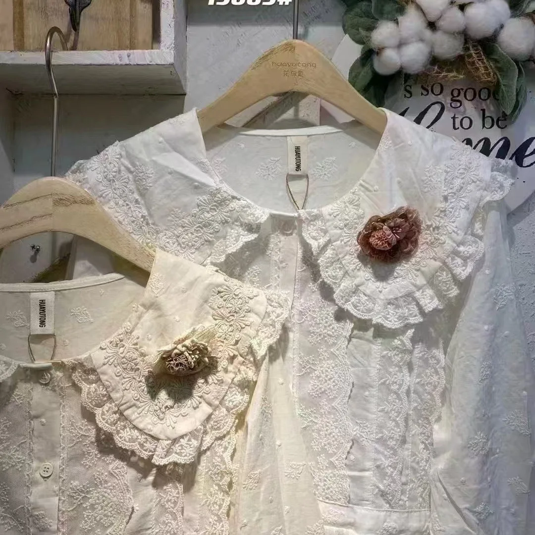 This elegant blouse features delicate lace and a ruffle Peter Pan collar, creating a timeless look. The lace adds a touch of femininity, while the collar adds a classic and sophisticated element. Perfect for any occasion, this blouse will elevate any outfit with its unique design. mujer