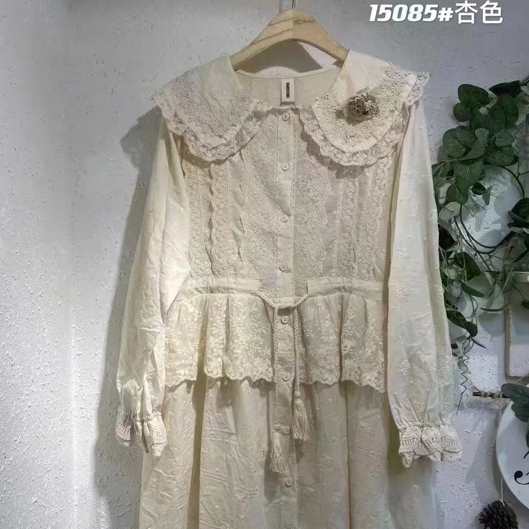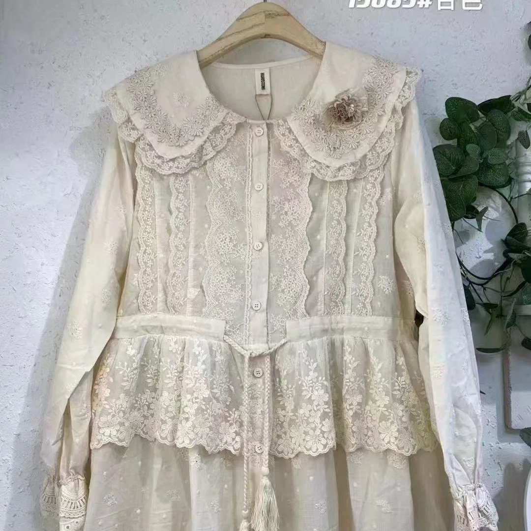 Lace Ruffled Peter Pan Collar Long Sleeve Blouse