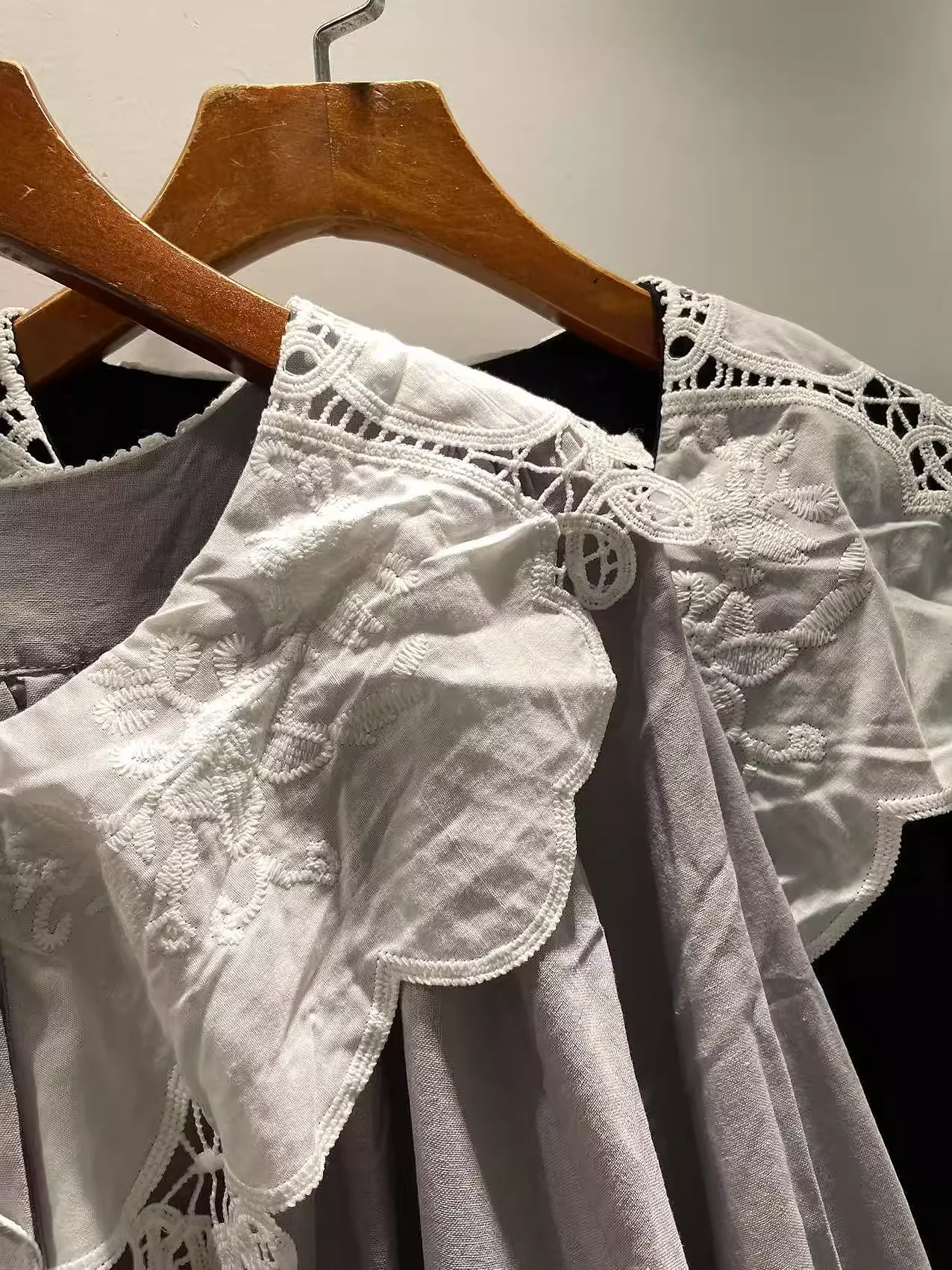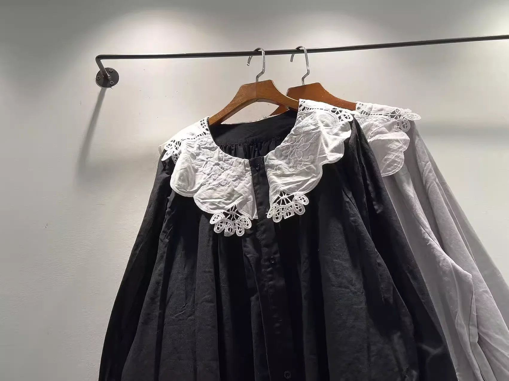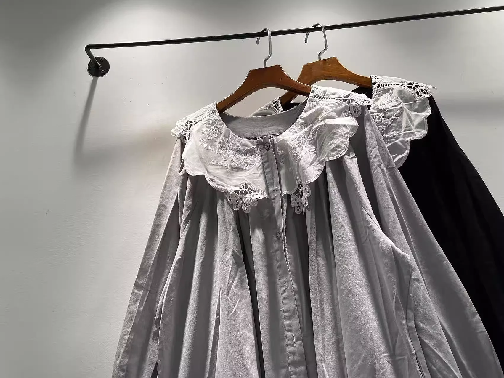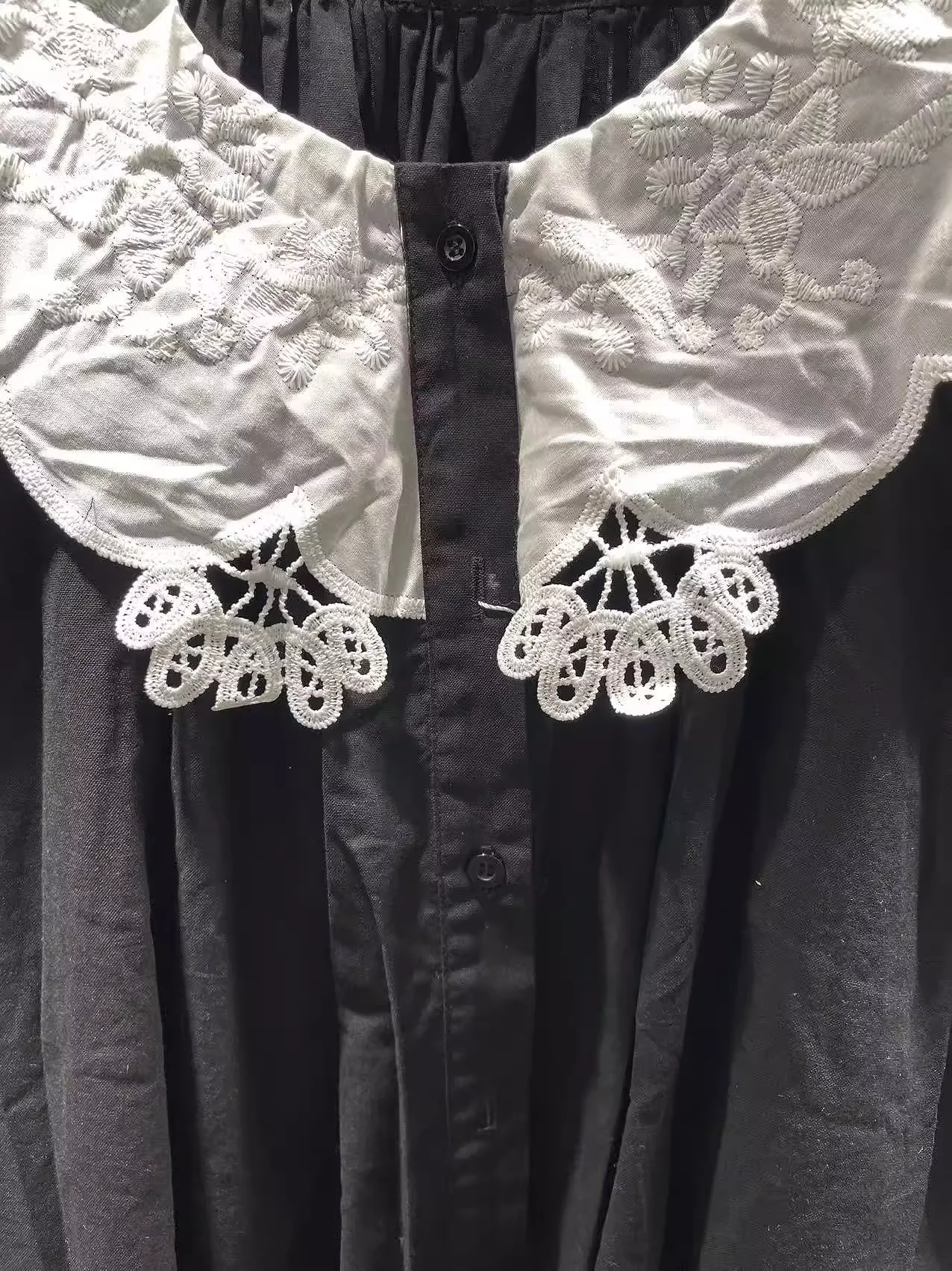 Bust 138cm Mori kei clothing Japanese style pure cotton lace collar black dress for women autumn vintage long dress