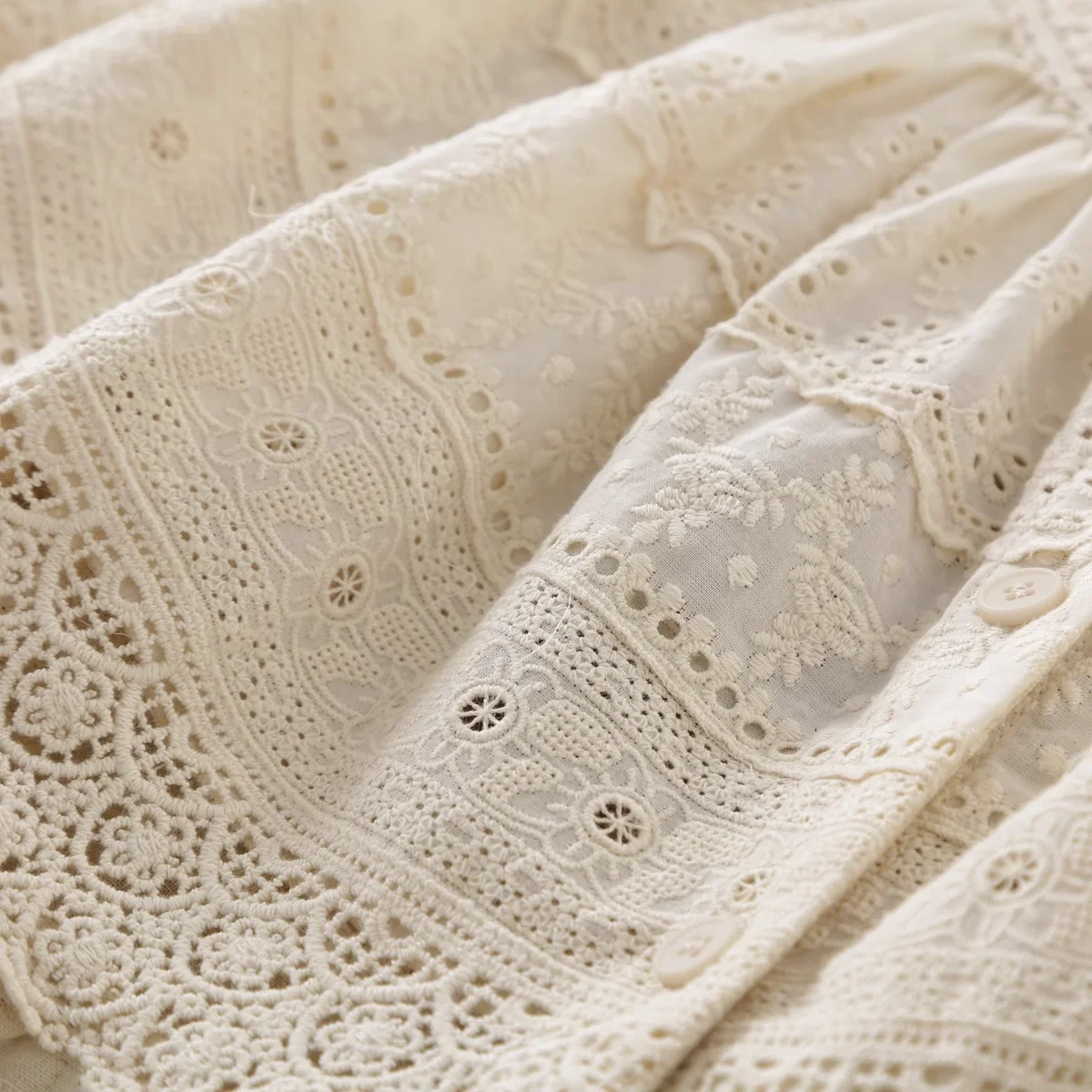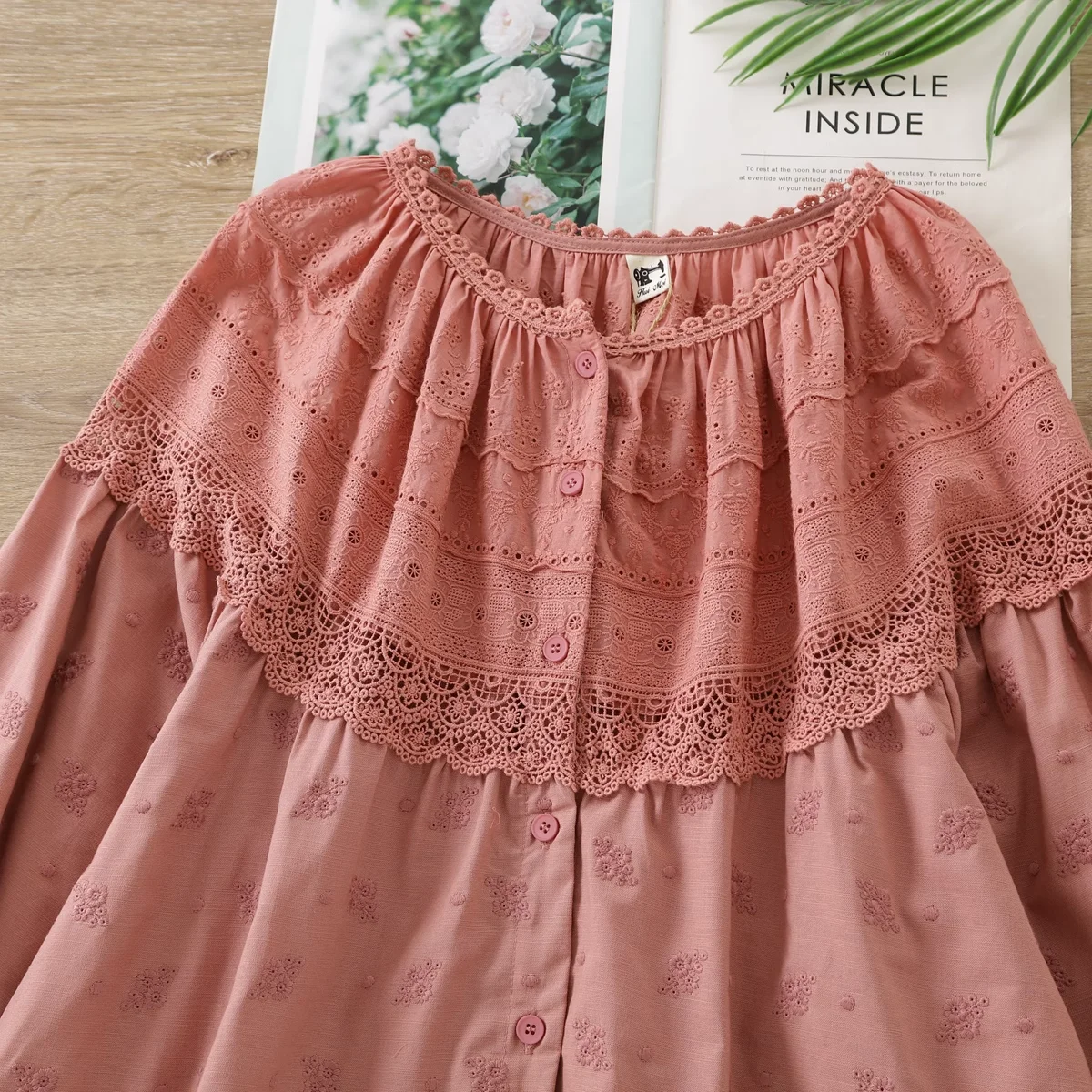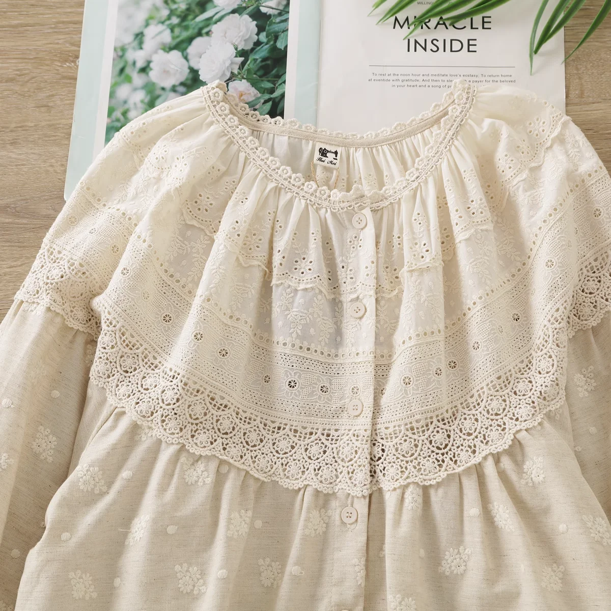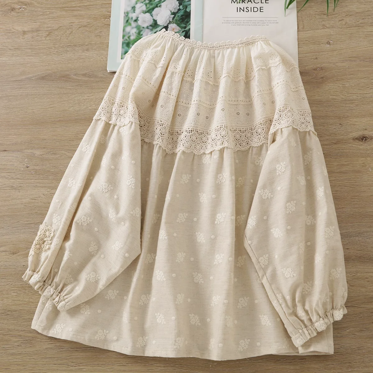 Cute clothes mori girl style Japan designer cotton lace crochet patchwork print shirts and blouses for women summer tops