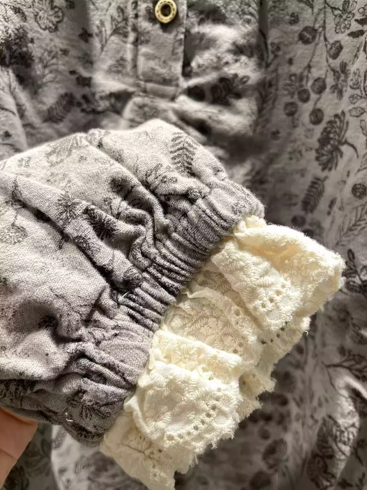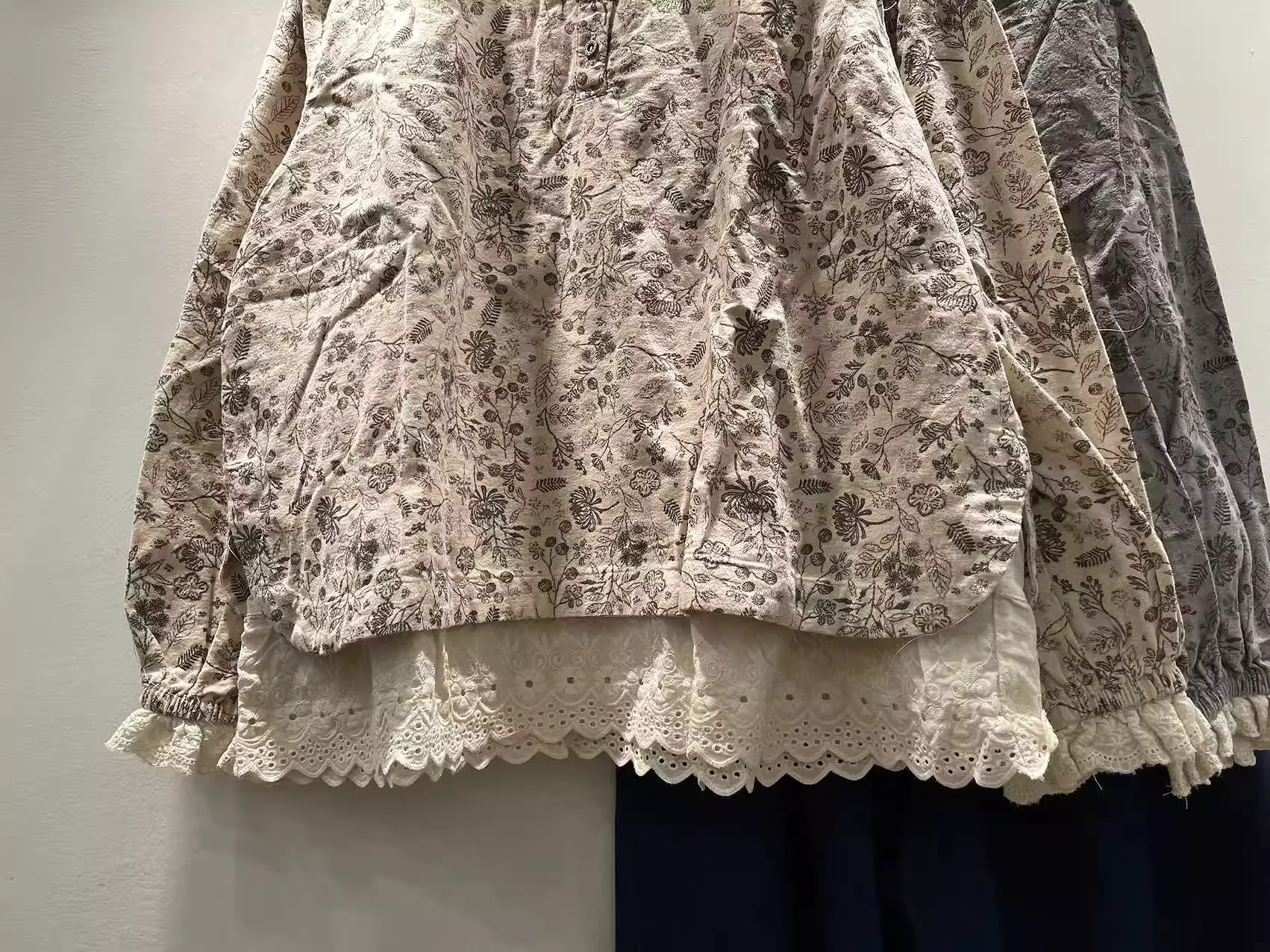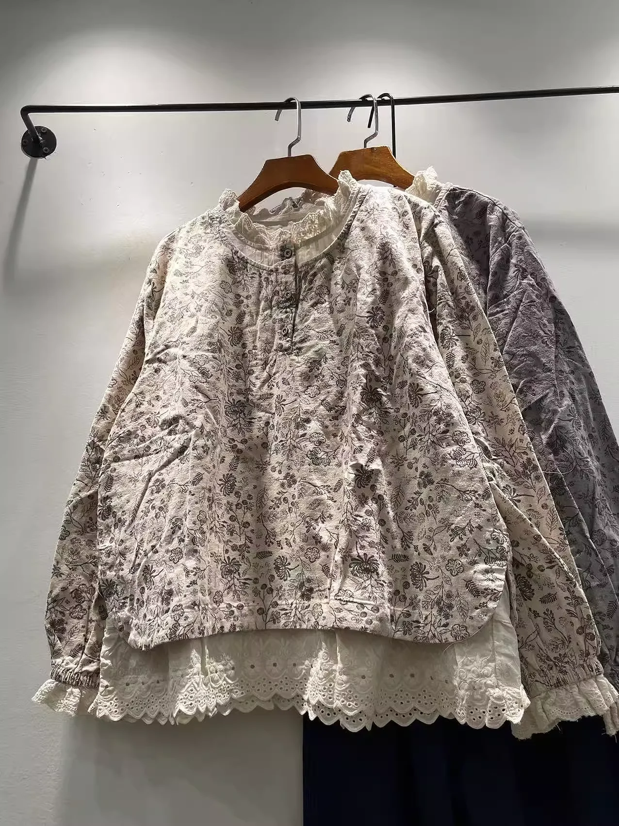 This lace blouse features intricate patchwork and a delicate print, adding a touch of elegance to any outfit. The lightweight fabric and sheer sleeves provide breathable comfort, while the flattering cut and intricate lace details elevate your style. An essential piece for any fashion-forward wardrobe. Enianechu Mori Kei Clothing Japanese Style Vintage Lace Patchwork Print Shirts and Blouse Pure Cotton Soft Autumn Tops