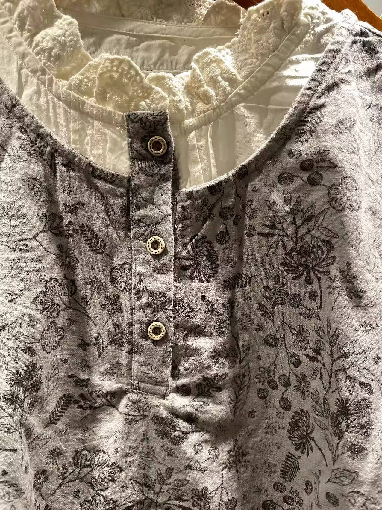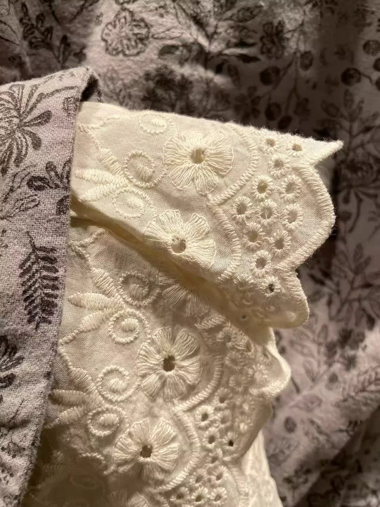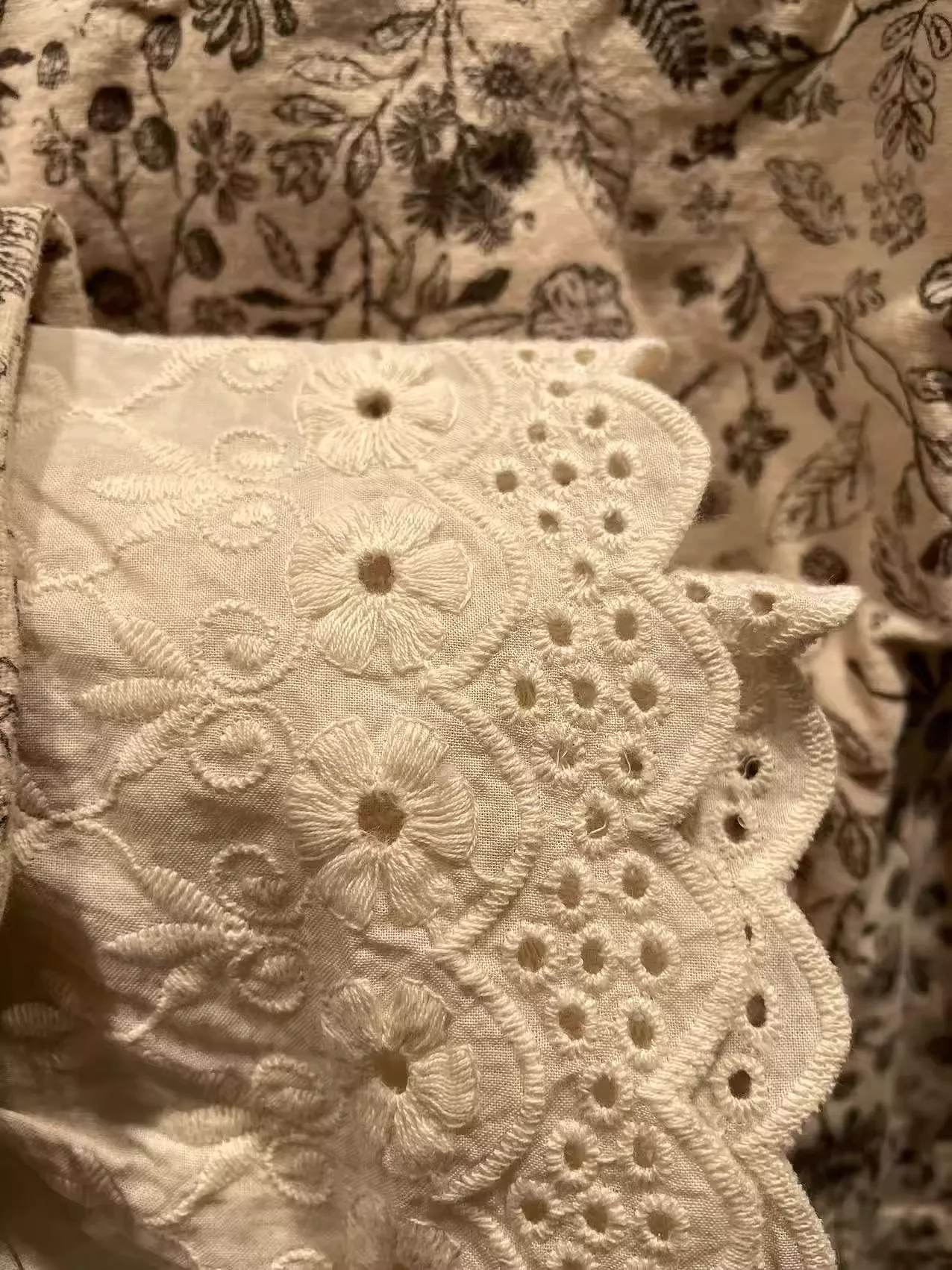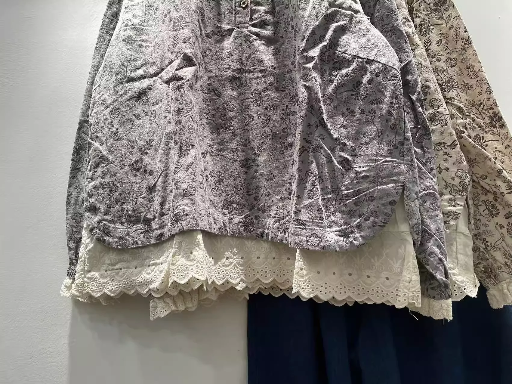This lace blouse features intricate patchwork and a delicate print, adding a touch of elegance to any outfit. The lightweight fabric and sheer sleeves provide breathable comfort, while the flattering cut and intricate lace details elevate your style. An essential piece for any fashion-forward wardrobe. Enianechu Mori Kei Clothing Japanese Style Vintage Lace Patchwork Print Shirts and Blouse Pure Cotton Soft Autumn Tops