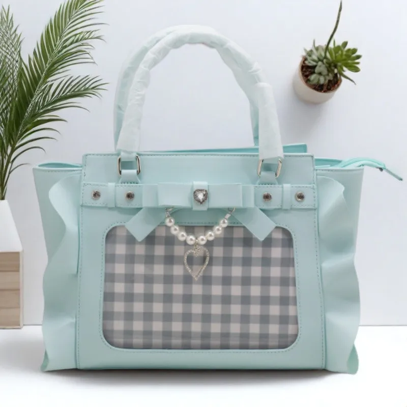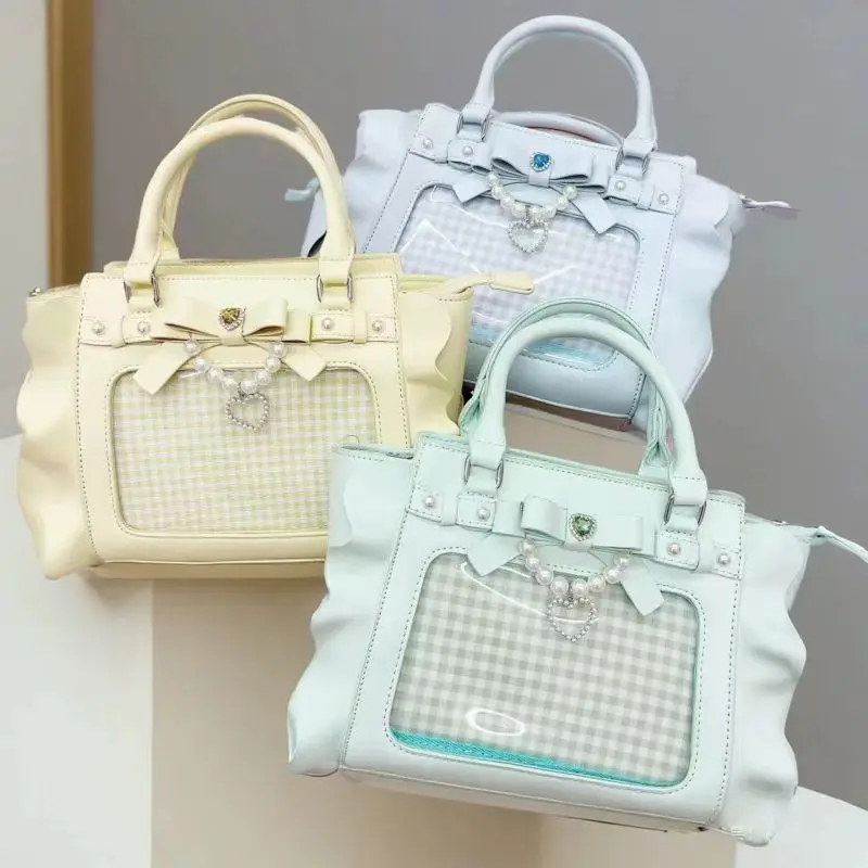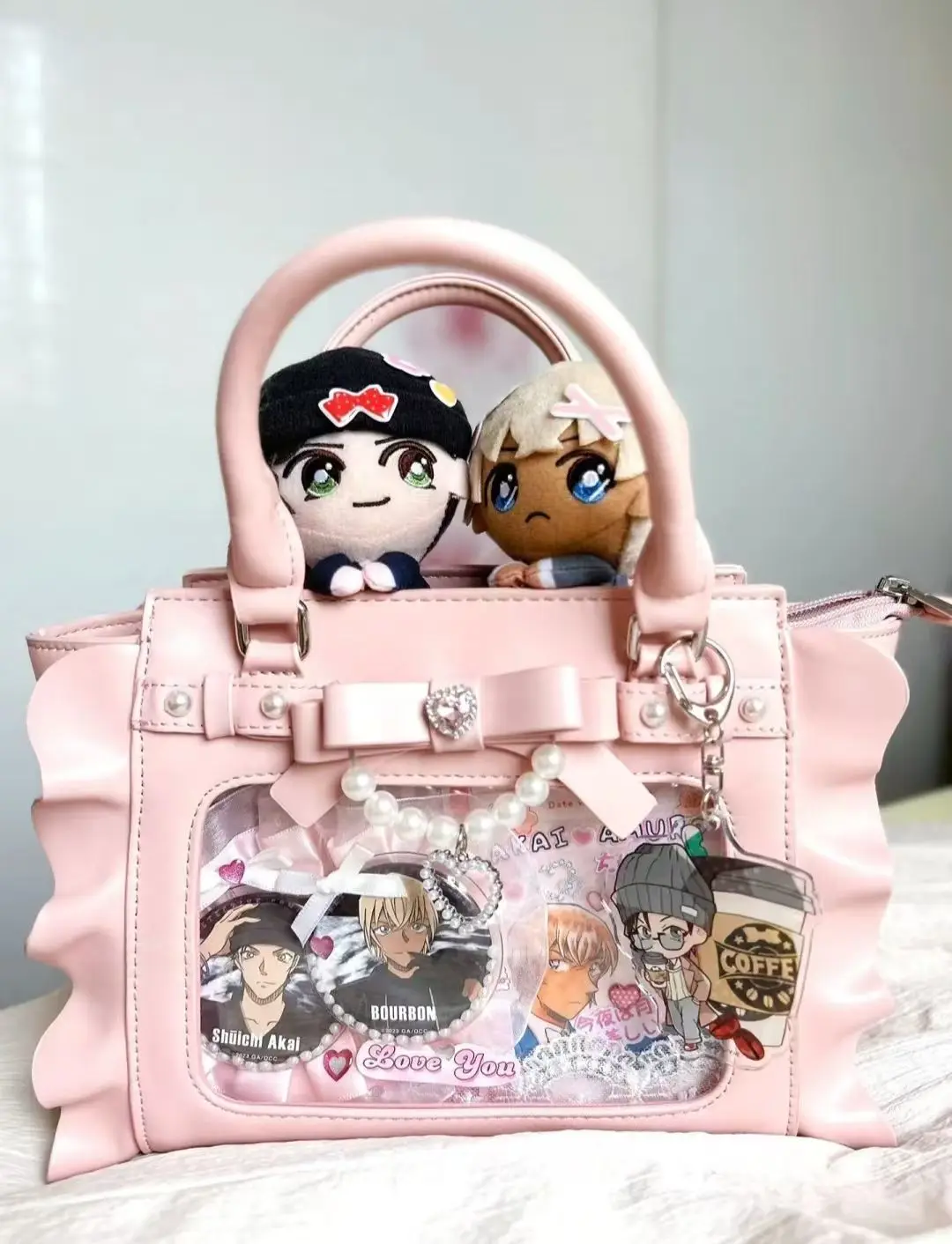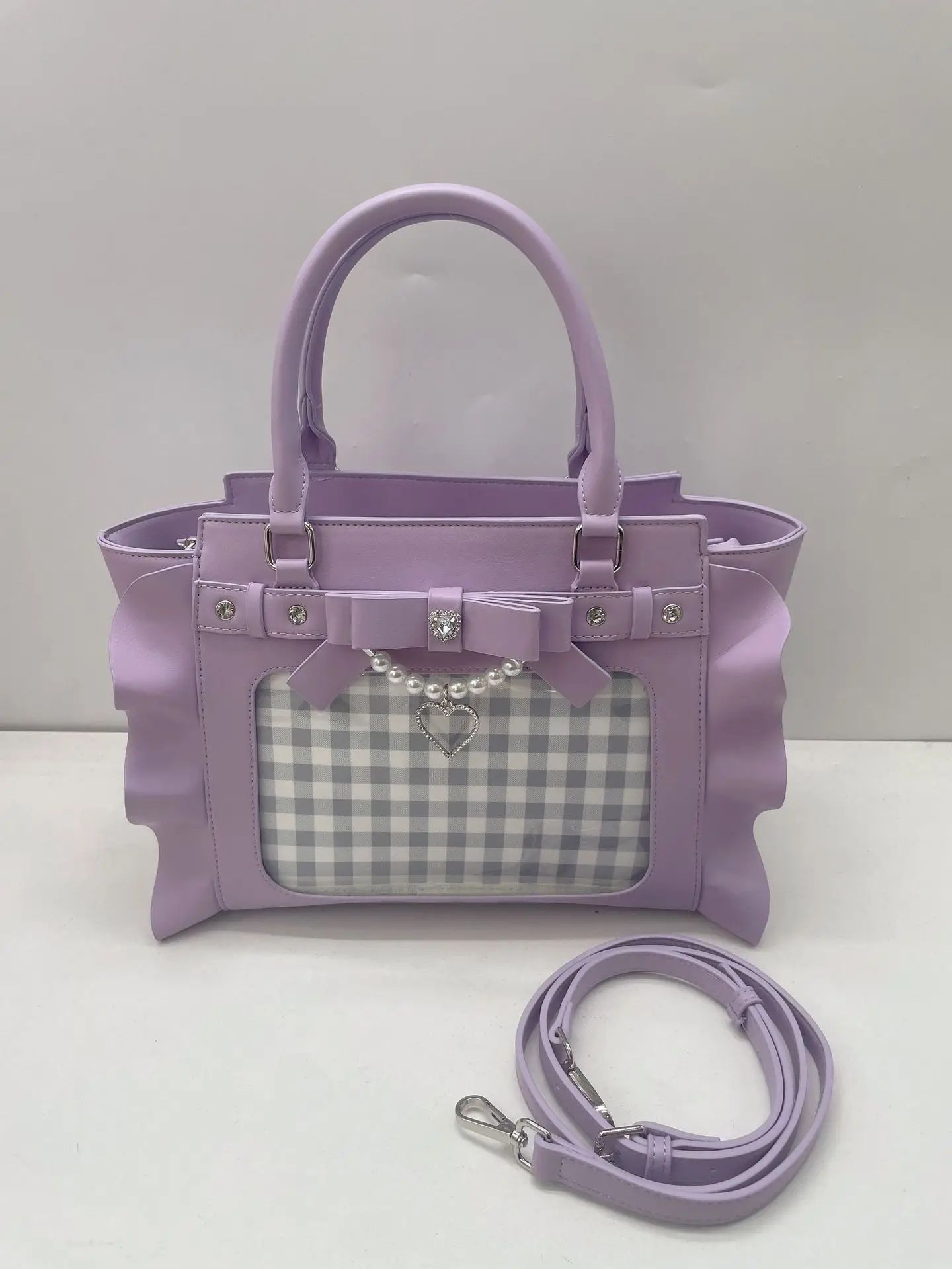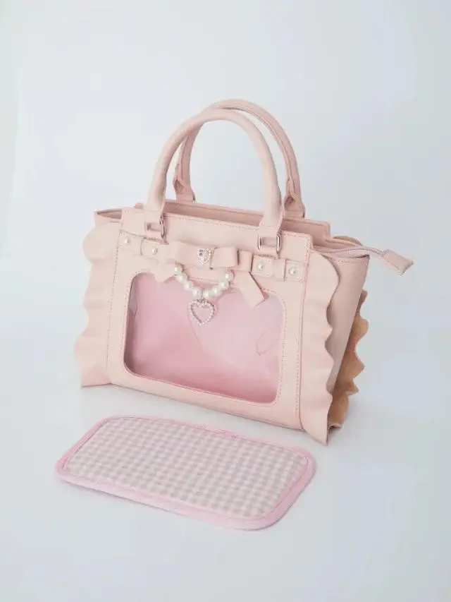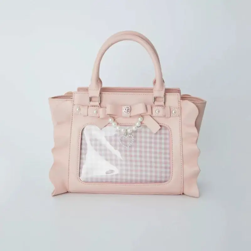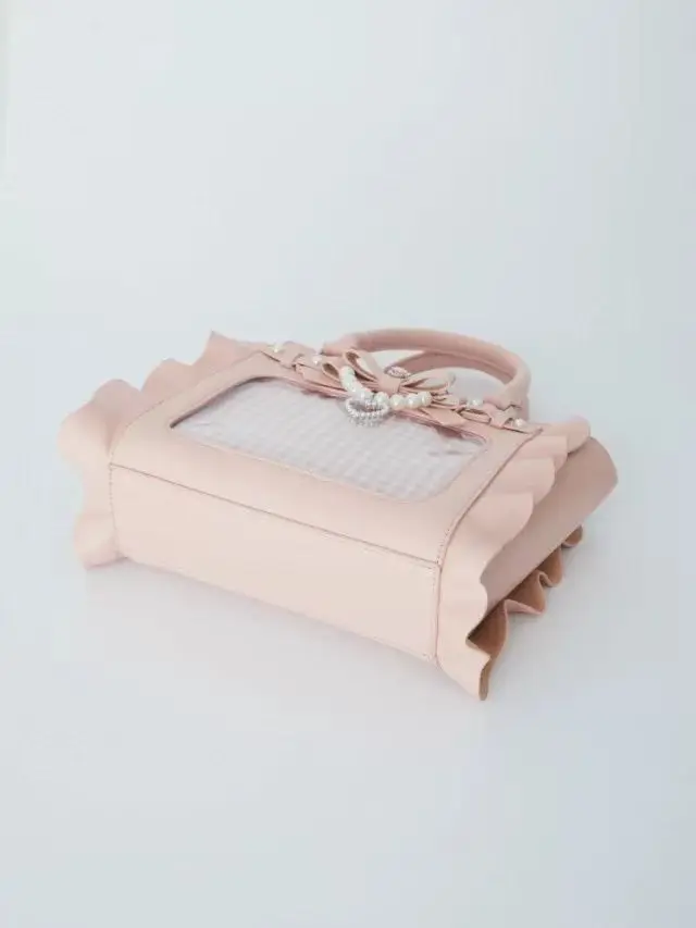 Square Pink Bag Pearl Handle Messenger Crossbody