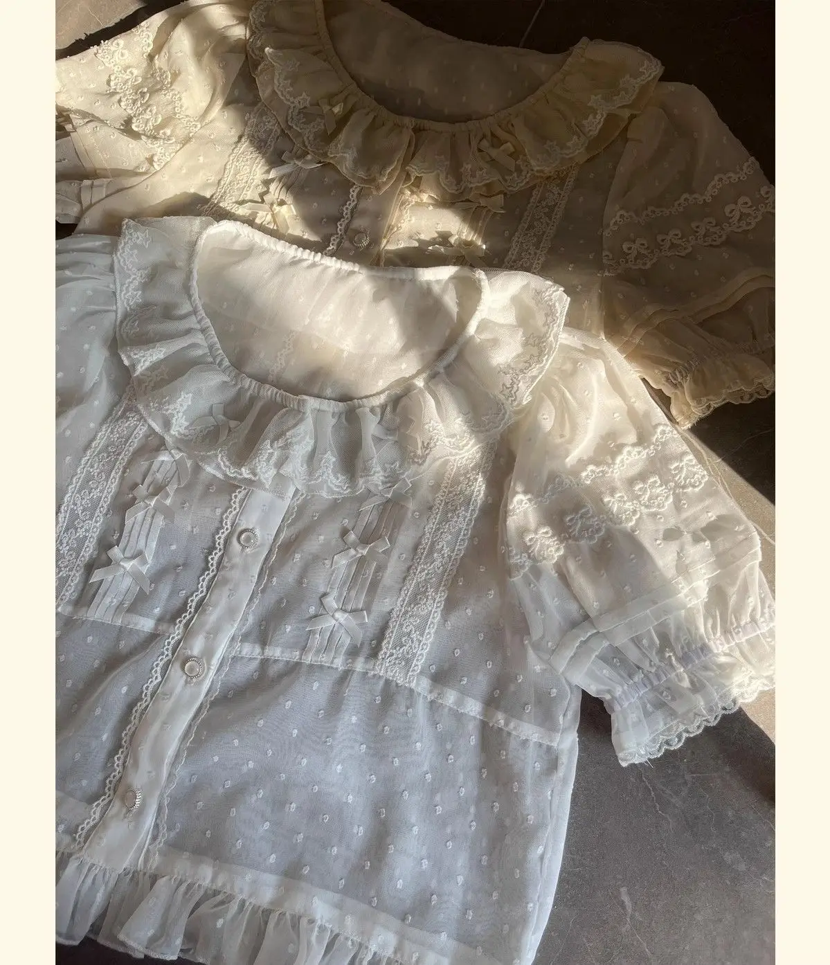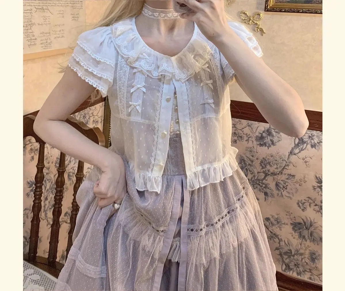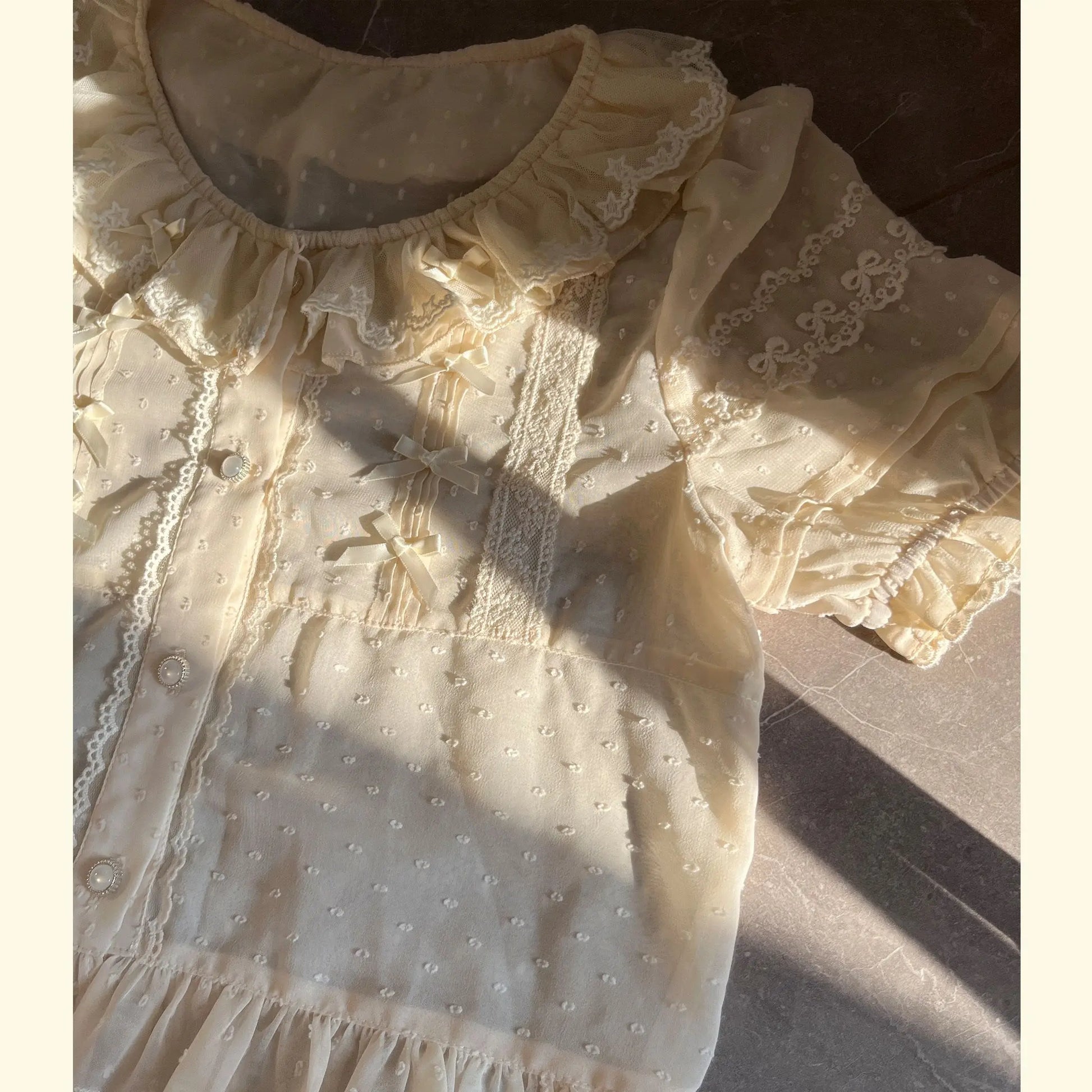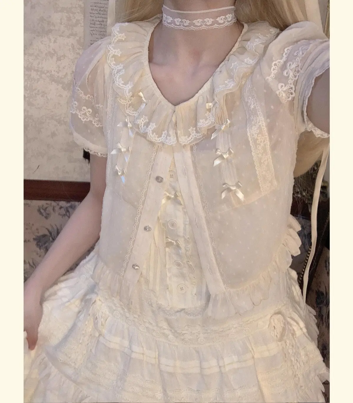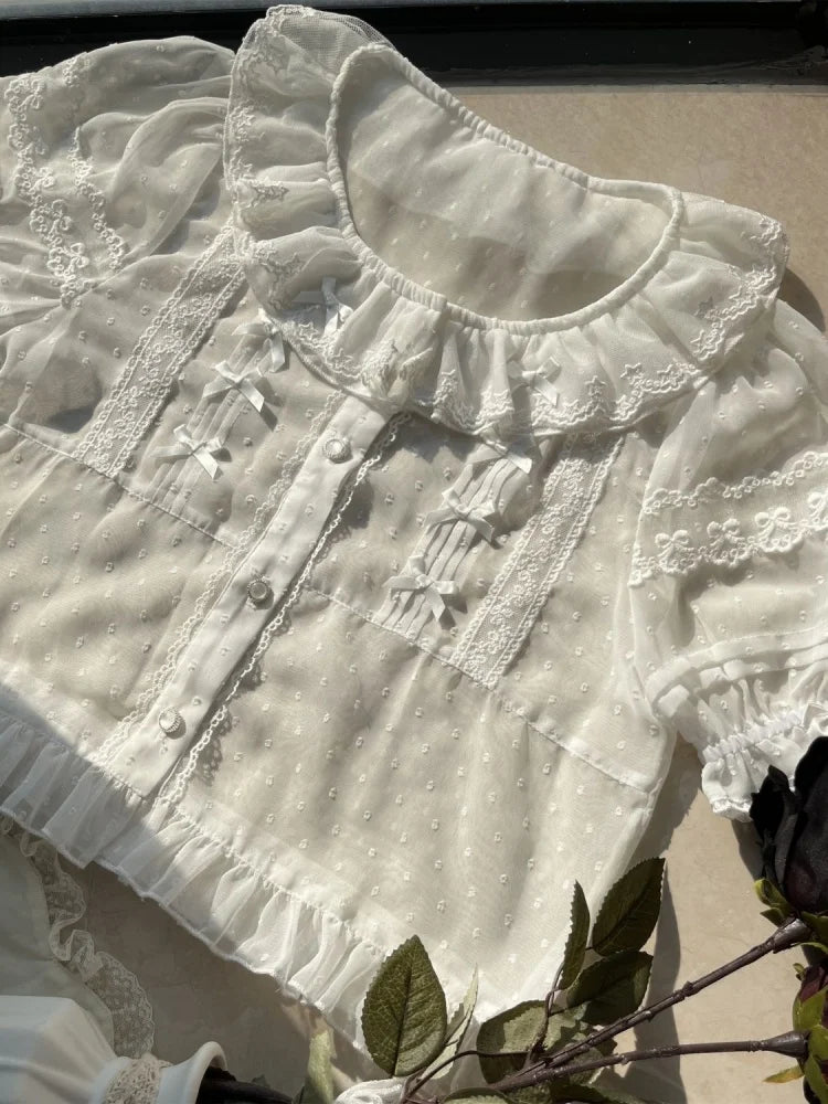 Chiffon Shirts Vintage Lace Ruffles Bow Blouse