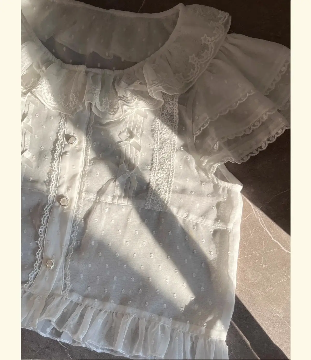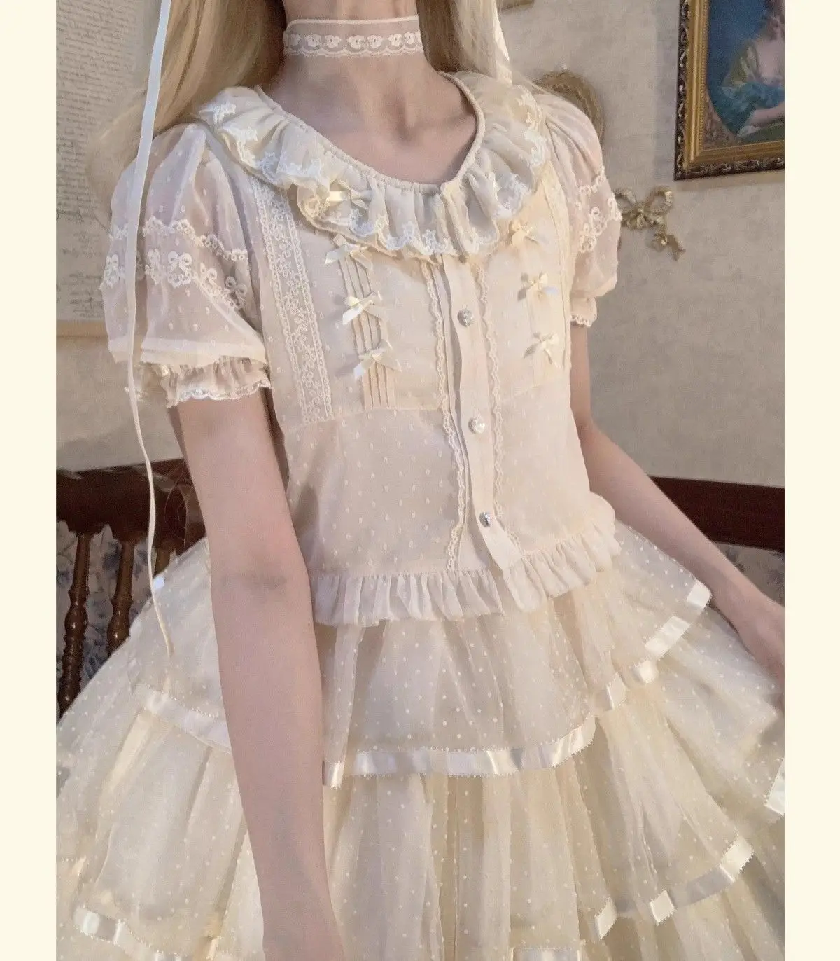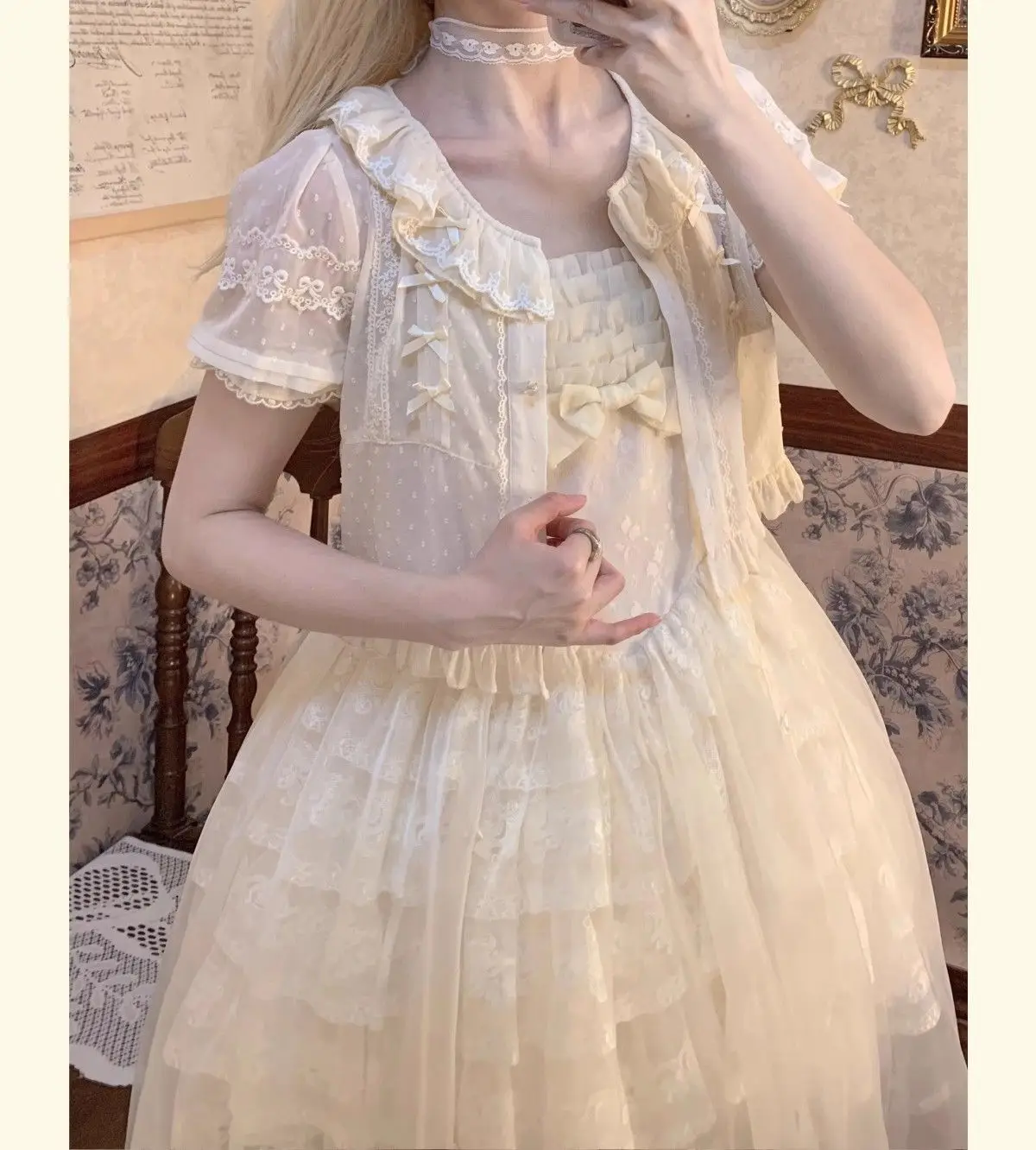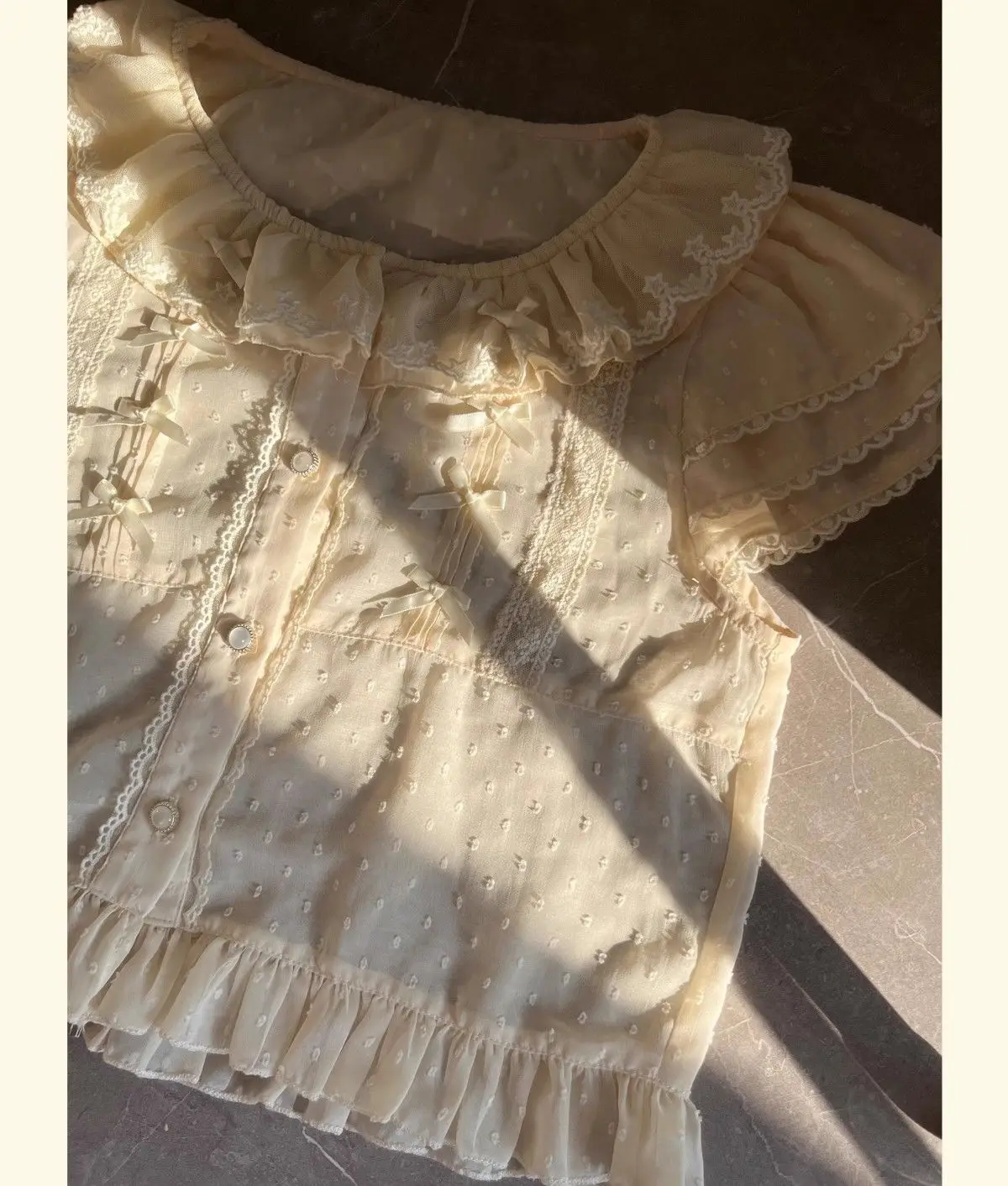 Chiffon Shirts Vintage Lace Ruffles Bow Blouse