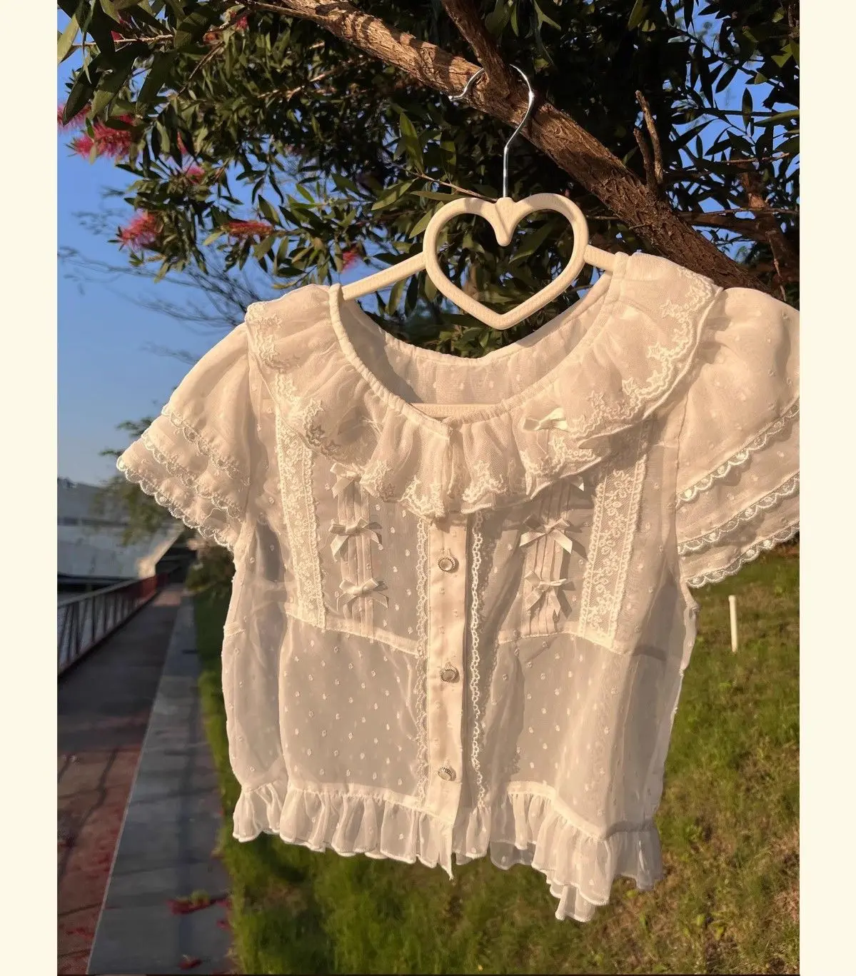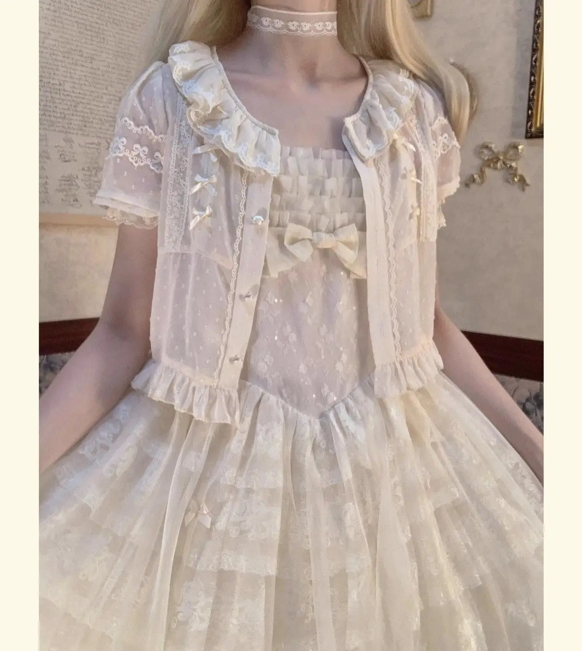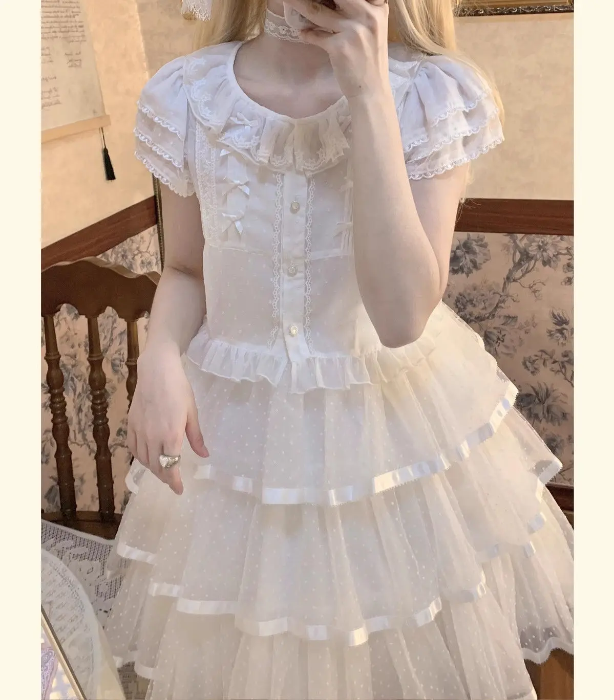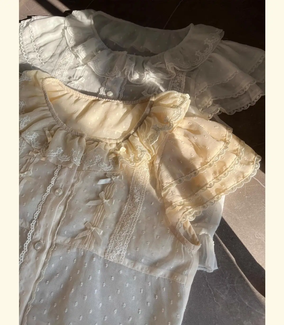 Chiffon Shirts Vintage Lace Ruffles Bow Blouse