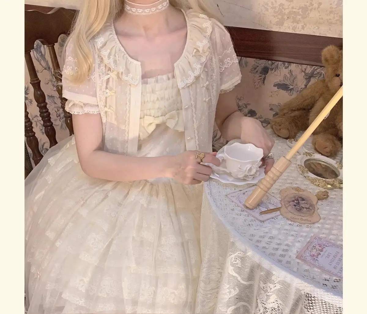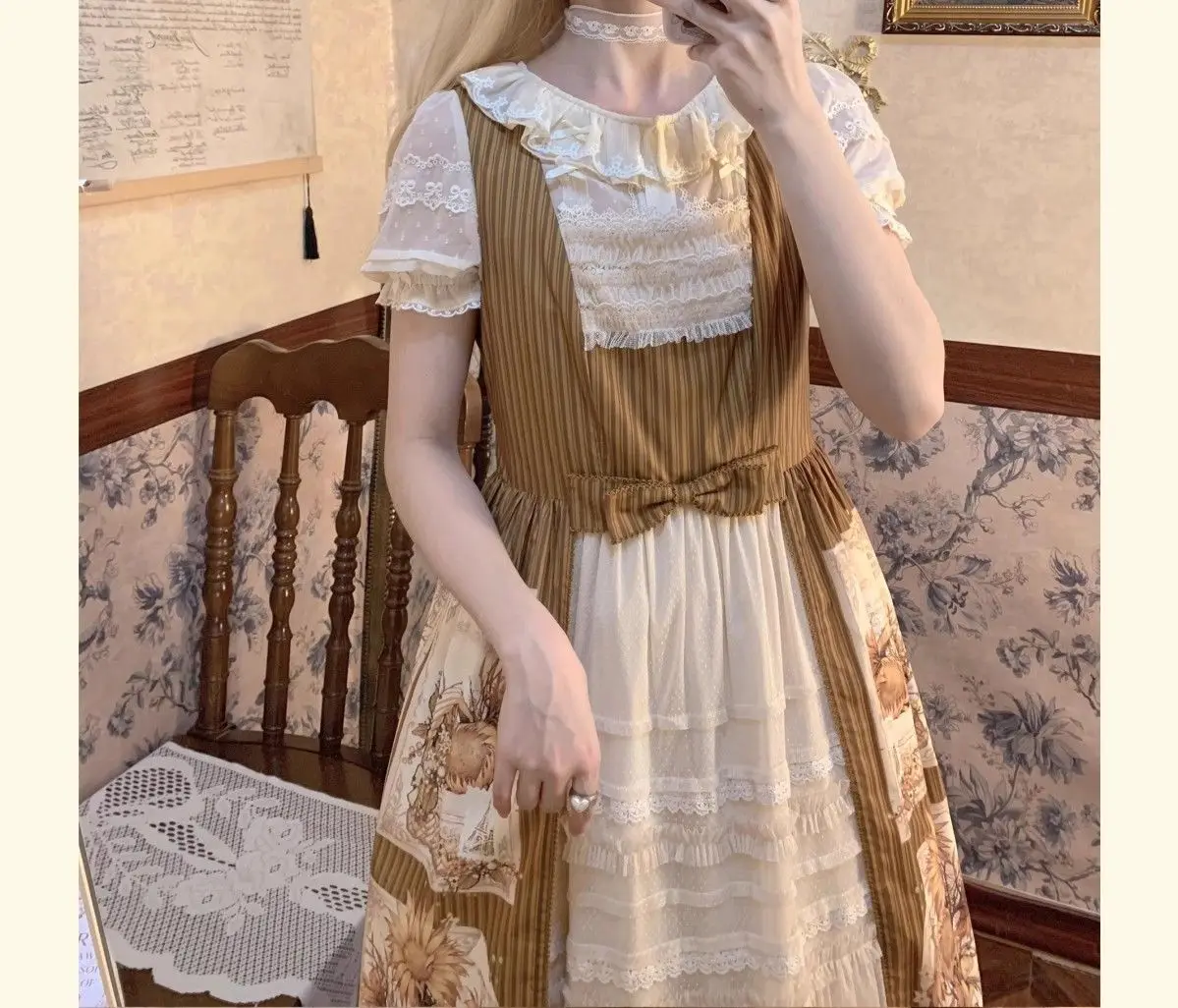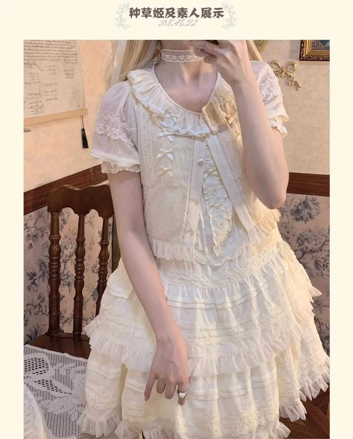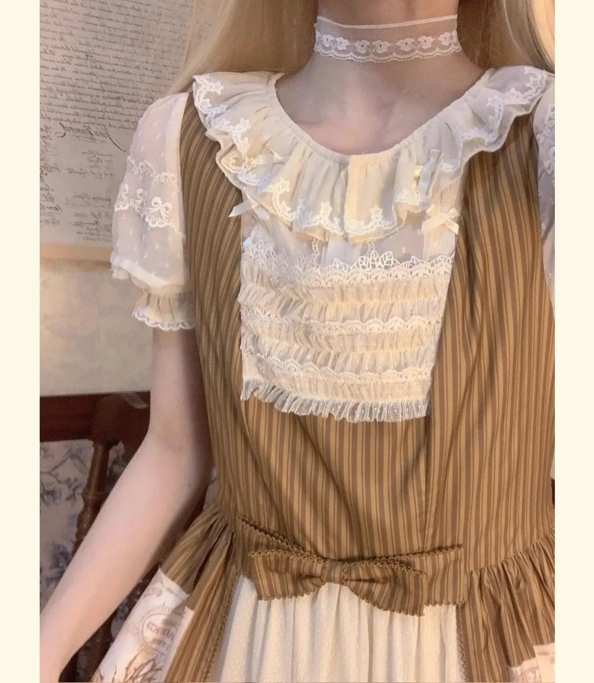 Chiffon Shirts Vintage Lace Ruffles Bow Blouse