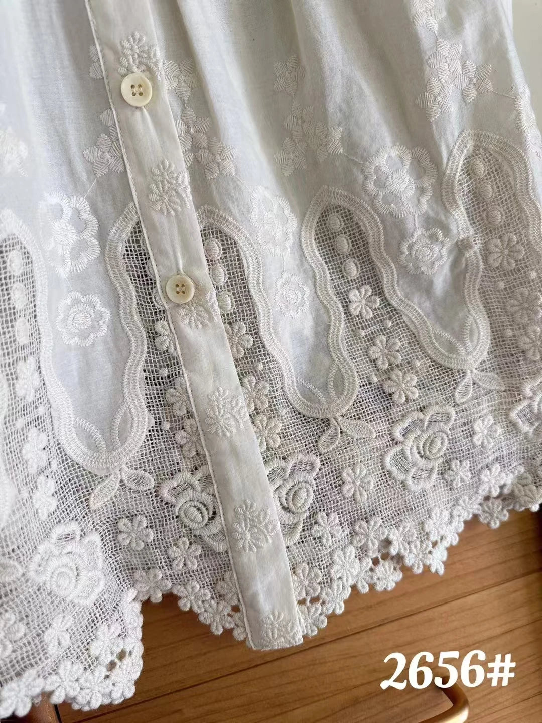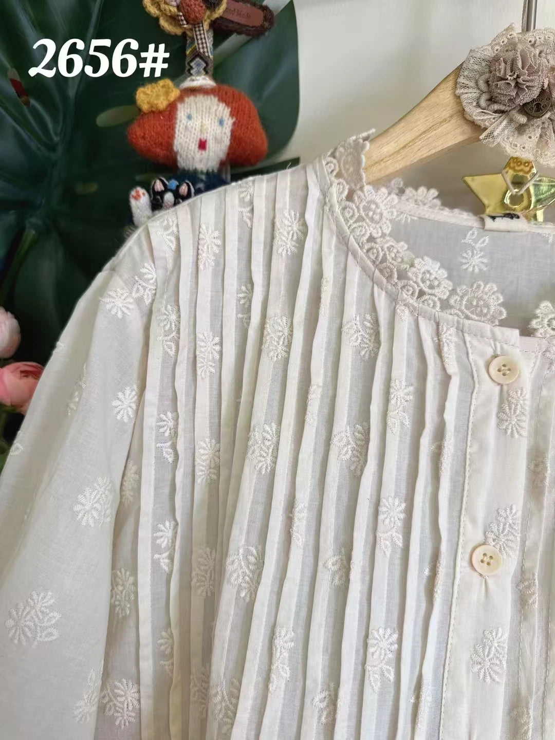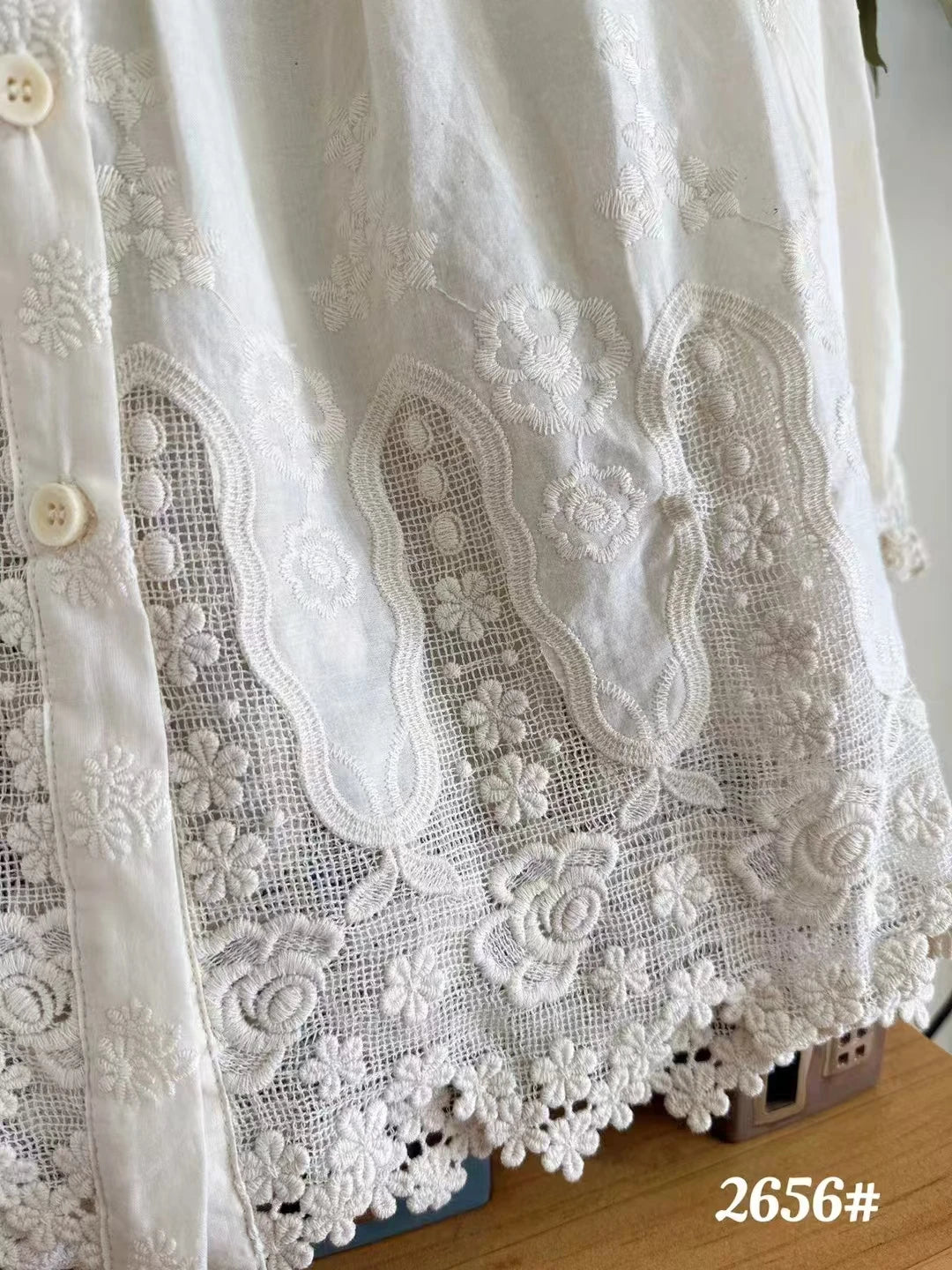 Japanese Sweet Mori Girl Embroidery Hollow Out Patchwork Cotton Shirts Women Spring New O-Neck Long Sleeve Casual Loose Tops