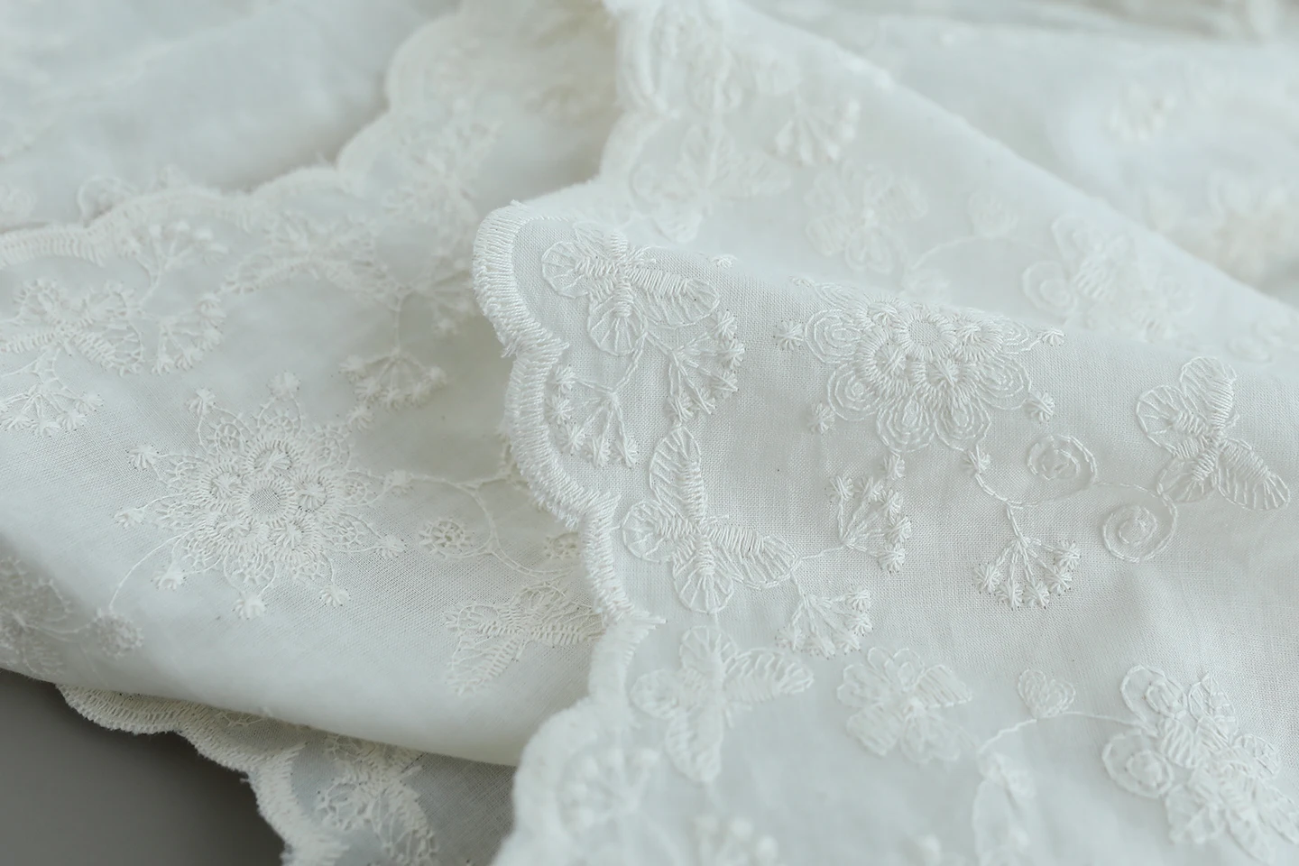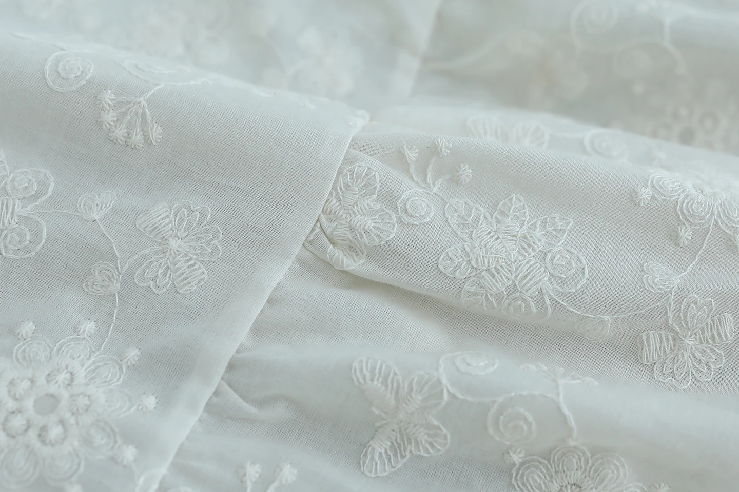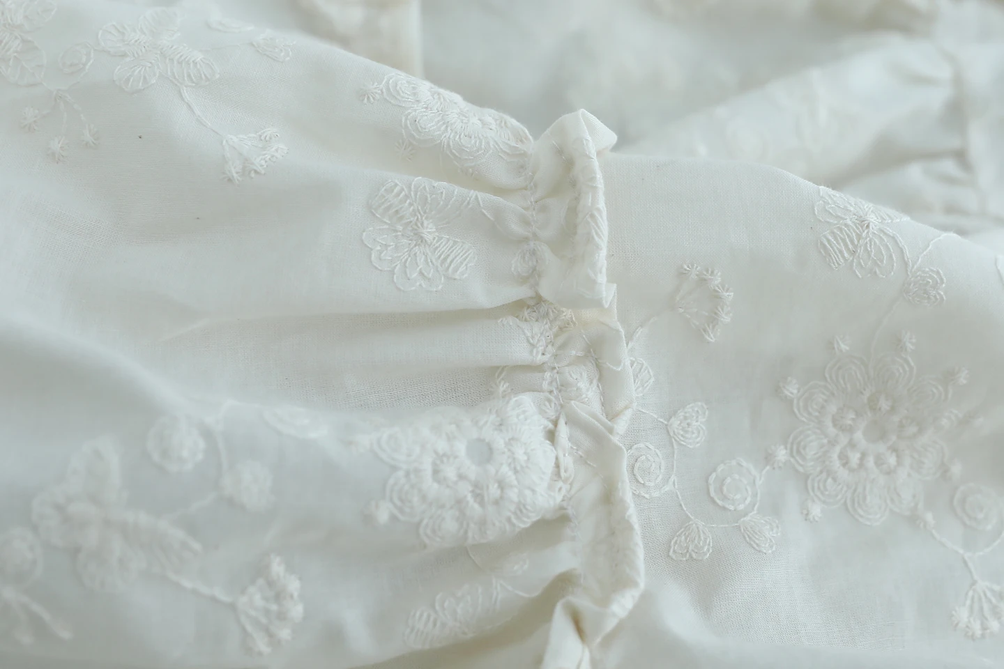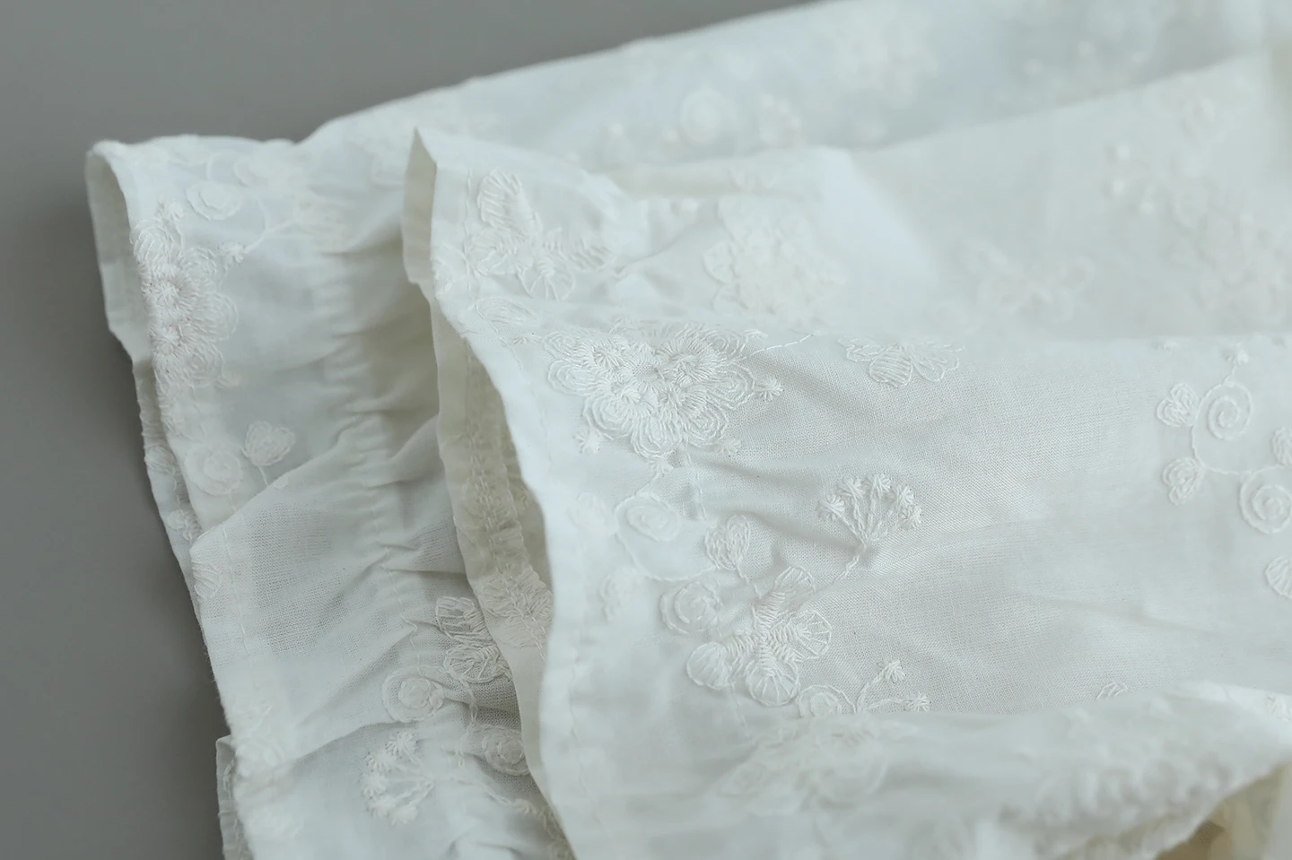 Japanese Sweet Mori Girl Embroidery Jacquard Cotton Shirts Women Summer Ruffled Lace Up Collar Short Sleeve Casual Blouse Tops