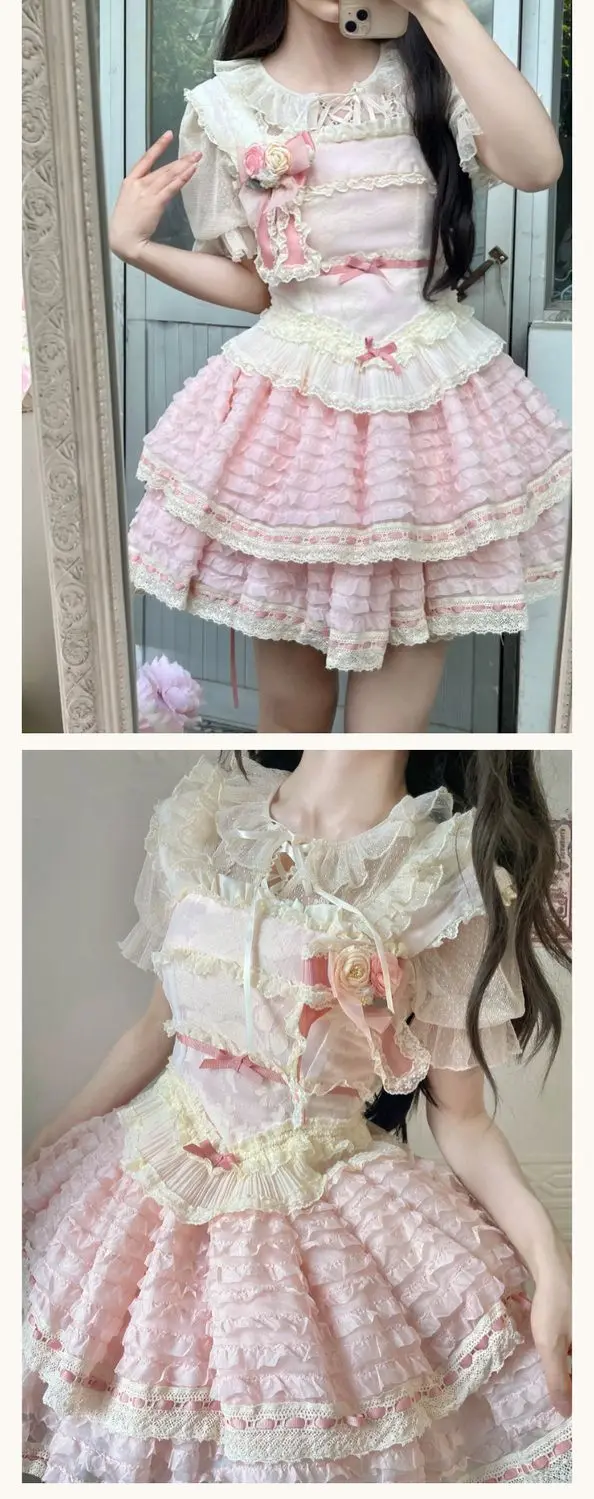 Lolita Sweet Lace Patchwork Women Blouse Japanese Y2K Aesthetic See Through Ruffled Shirt Summer Harajuku Grunge Bandage Blusas