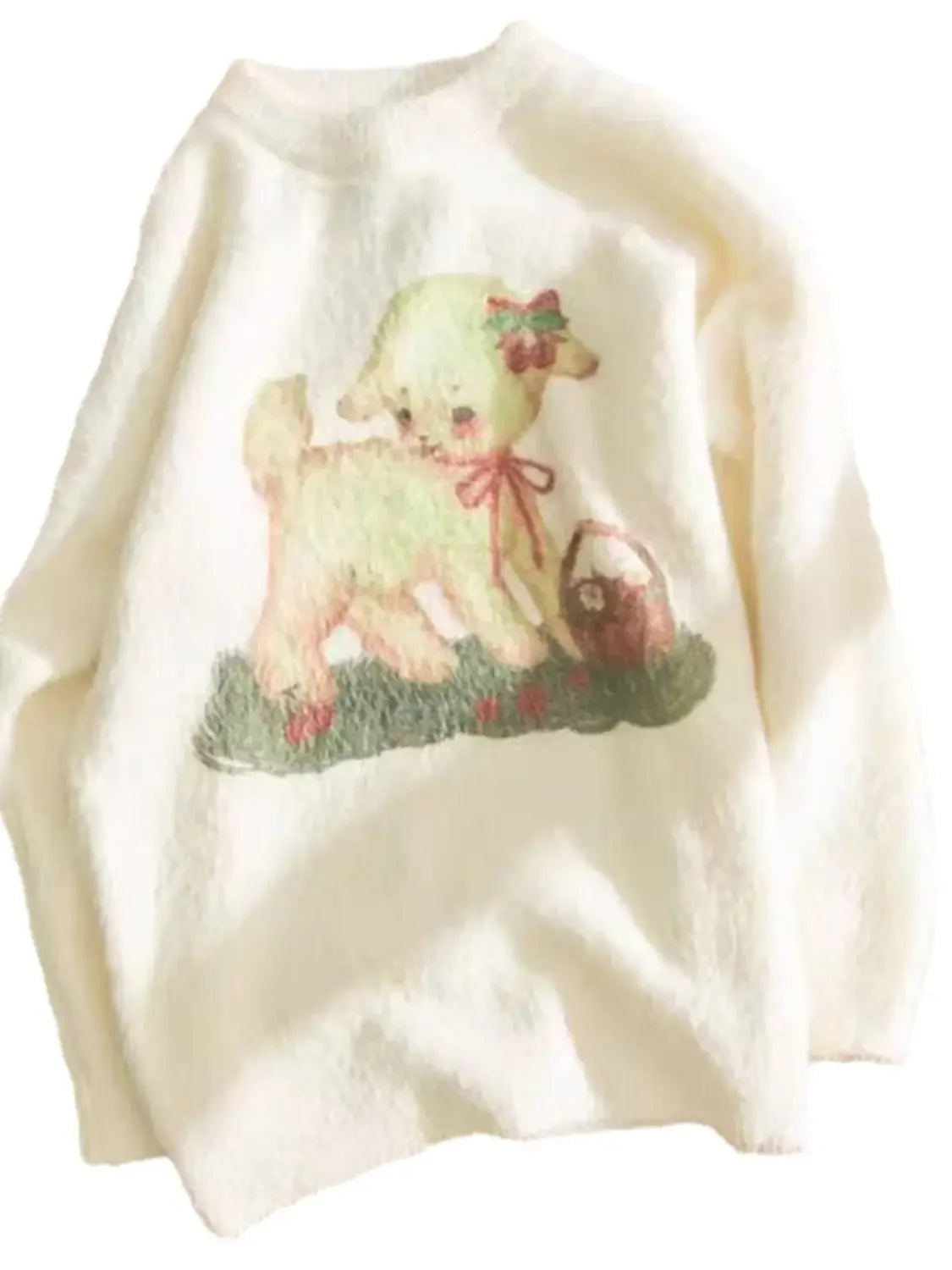 Mori cute sheep mink sweater women 2024 new round neck long-sleeved Japanese soft lazy loose knit sweater thickening