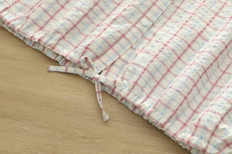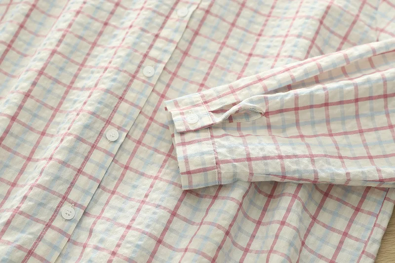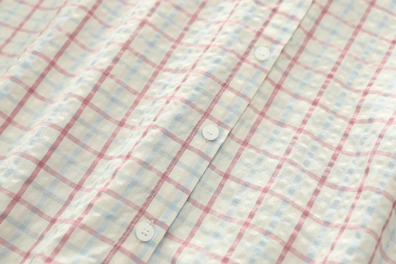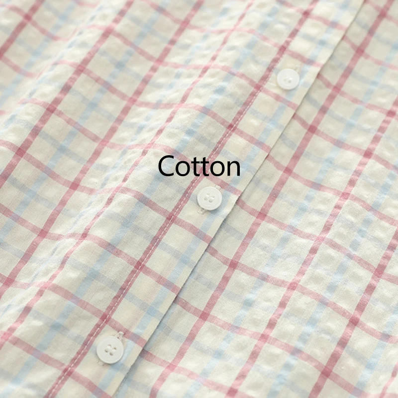 New 2025 Autumn Bubble Cotton Hooded Shirt, Women Long Sleeve Plaid, Mori Girl Casual Versatile Sunscreen Loose Blouse T57448CC