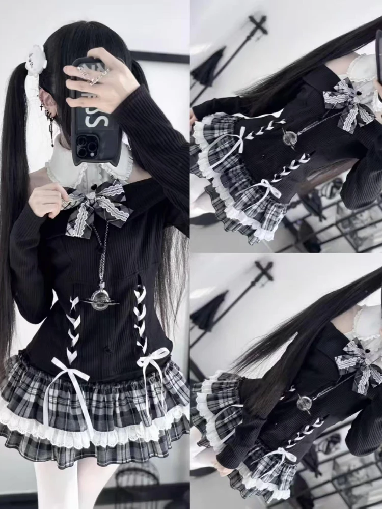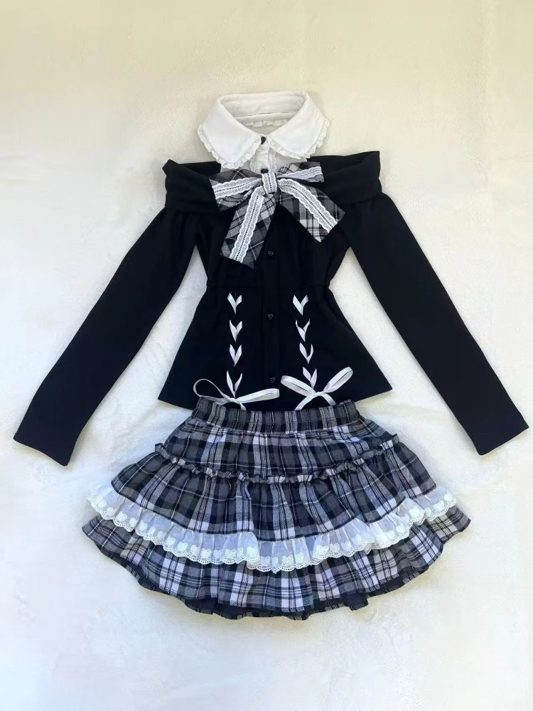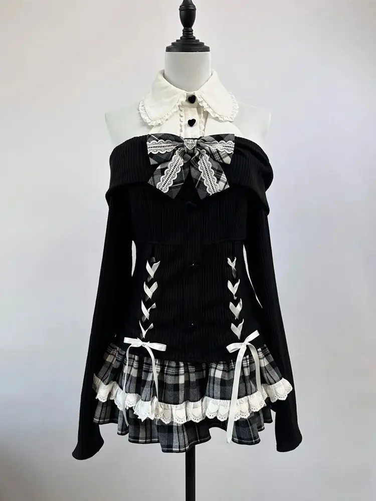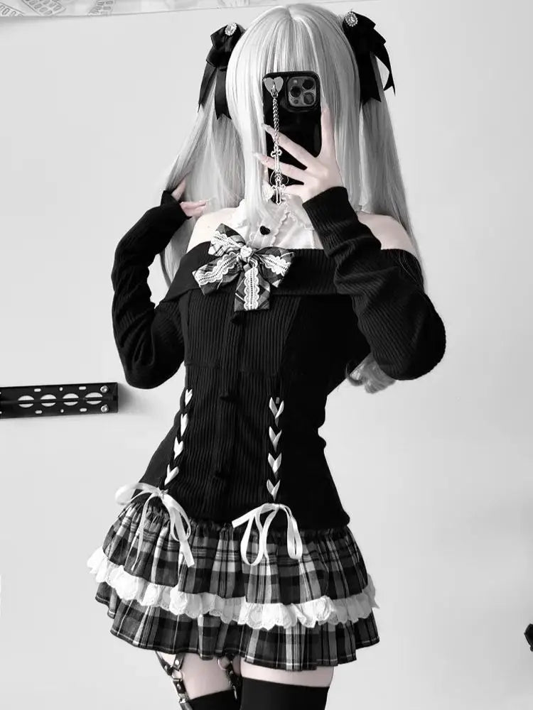 2-piece Bow Long Sleeve Suit Knit Outfit