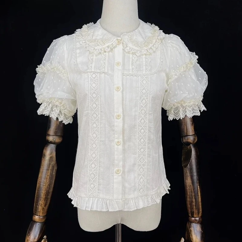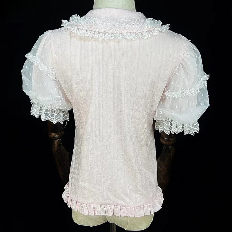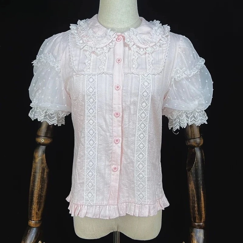 Summer Japanese Sweet Lolita Shirts Women Kawaii Cute Puff Short Sleeve Lace Ruffles Slim Blouses Tops Girls Y2k Clothes New