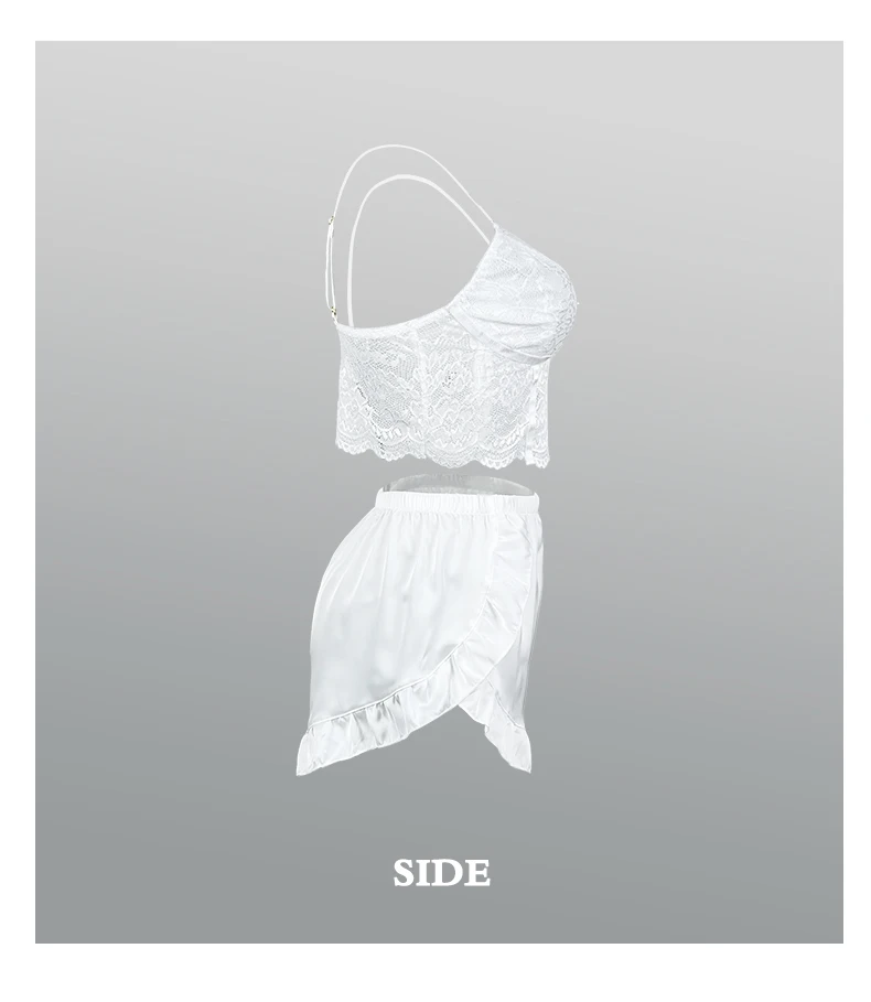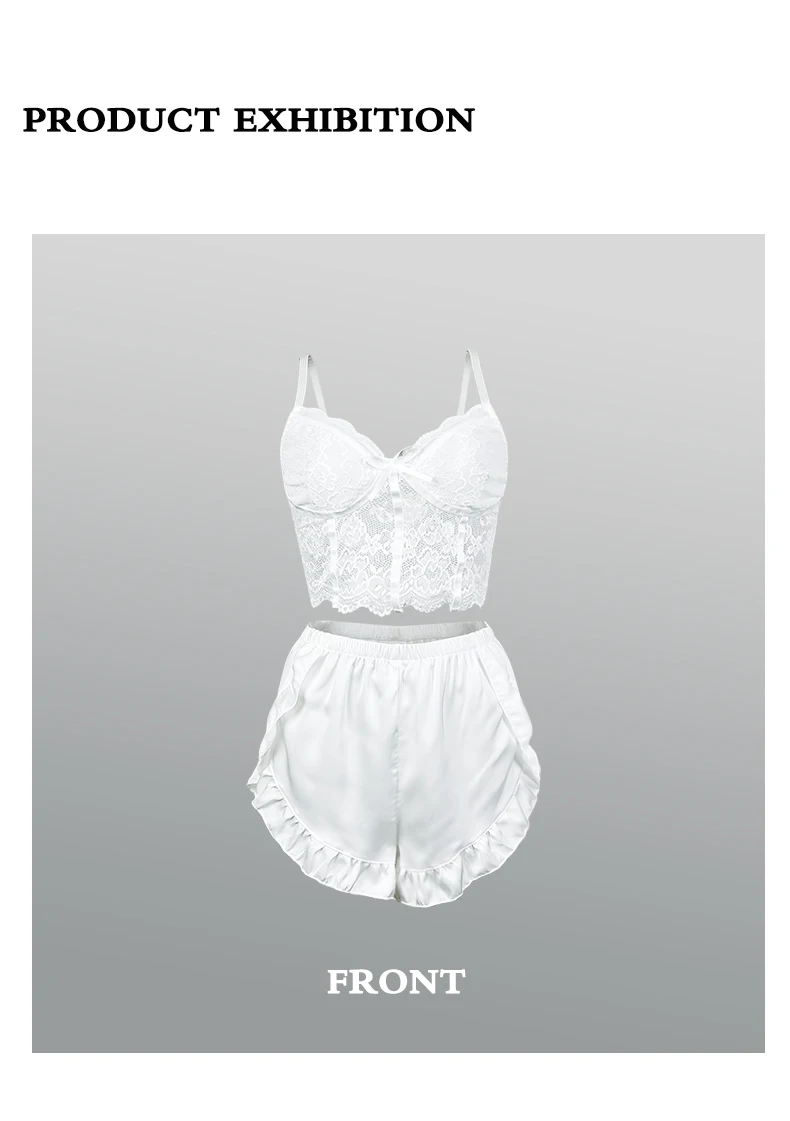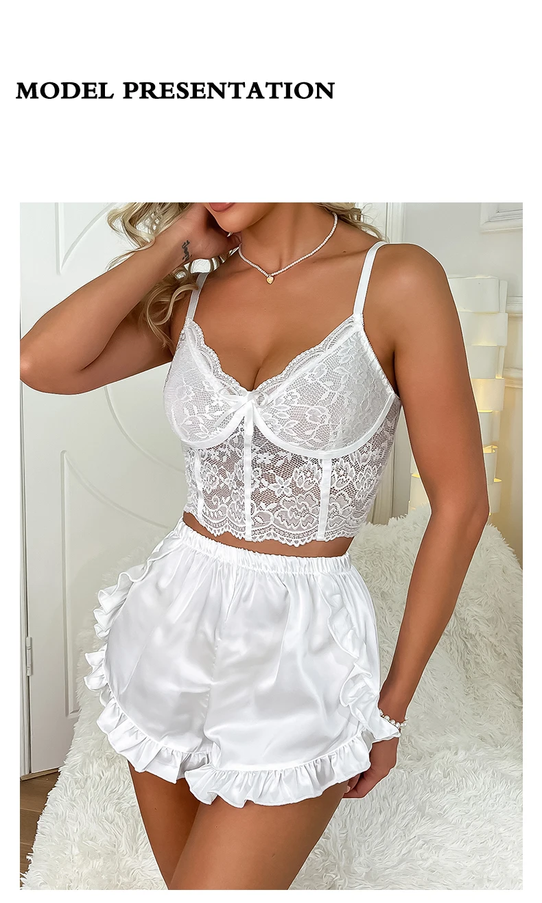 Sweet Sexy Lace Halter Top Ruffles Shorts Sleepwear Set Women's White Strapless Leisure And Breathable Pajamas Sexi Lingerie 543